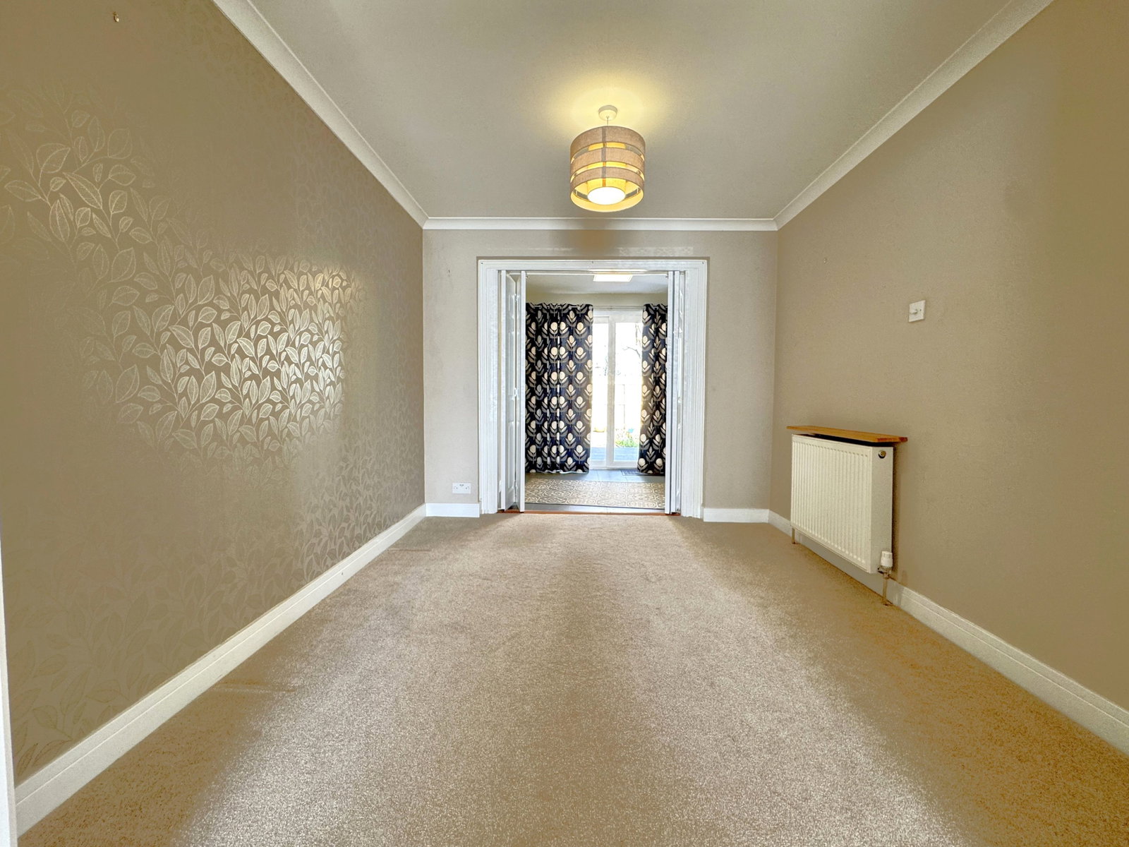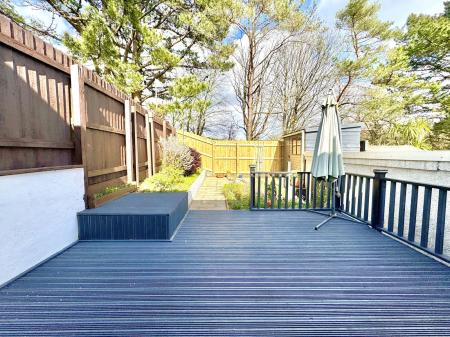 To the front, there is a driveway providing parking for several vehicles leading to the garage with an adjacent lawned garden. To the rear, a decking area leads to a paved garden incorporating several established plants and shrubs, along with a large timber shed (to remain), all enclosed by fenced boundaries.