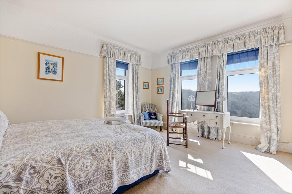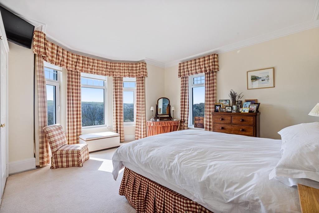 The first floor continues the house's character beautifully, with a wide landing and staircase creating an attractive sense of space and light. There are four bedrooms in total, all well-proportioned and arranged to suit both family life and visiting guests. The principal bedroom is a particularly lovely room, set within the bay window above the drawing room and enjoying prominent views across the estuary, as well as the benefit of an en-suite bathroom. A family shower room serves the remaining bedrooms, and from this level, the elevated position of the house becomes even more apparent, with the outlook over the surrounding area and towards the water becoming all the more impressive.