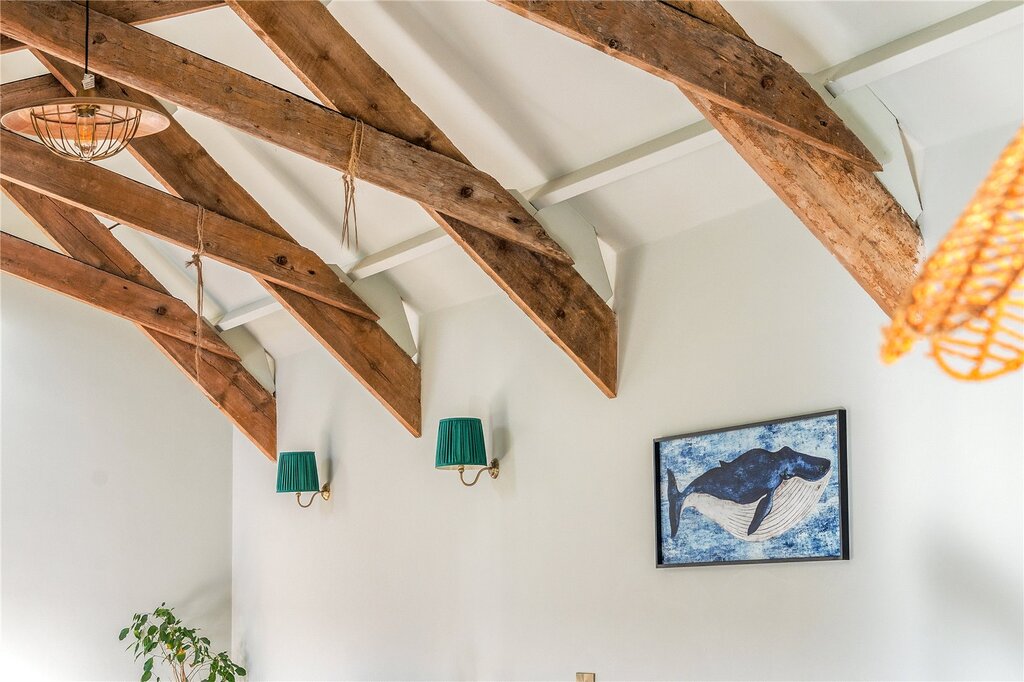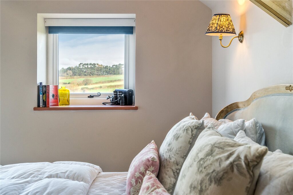 Set within around 1.5 acres, the grounds create a wonderful sense of space and self-sufficiency, with a garden and courtyard, an orchard, naturalised meadow planting and a productive kitchen garden complete with a polytunnel, two gated vegetable beds and a chicken coop. Wide, open views extend across the unspoilt South Hams countryside.
