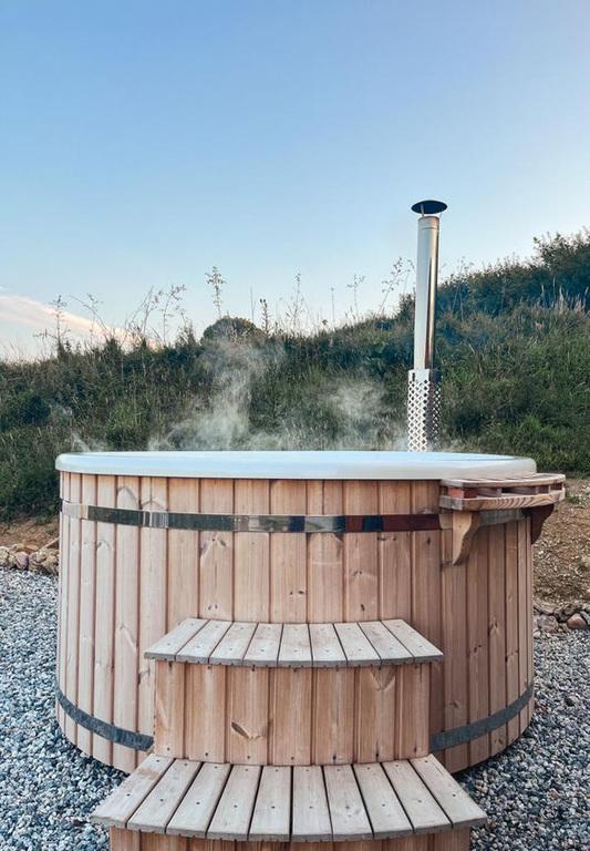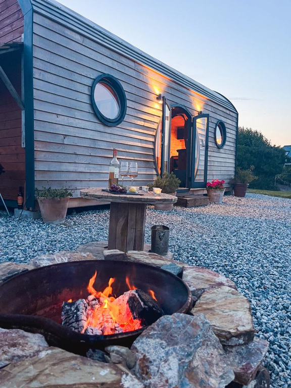 In addition to the main house, Hidden Hill offers an established, family-run glamping business with sustainability at its core and a 5 star google review. Thoughtfully positioned within their surroundings, the two luxury cabins create a genuine sense of retreat, somewhere guests arrive and immediately feel a world away. Evenings revolve around the wood-fired hot tubs and fire pits, supper cooked outside, and star-filled skies overhead, with the valley settling into complete quiet and the soft call of barn owls after dark. Come morning, it’s coffee with rolling views and a slower start, before days that can be as full or as unhurried as they wish, from beaches and coastal walks to Dartmoor adventures, returning to a peaceful night’s sleep in sumptuous bedding.