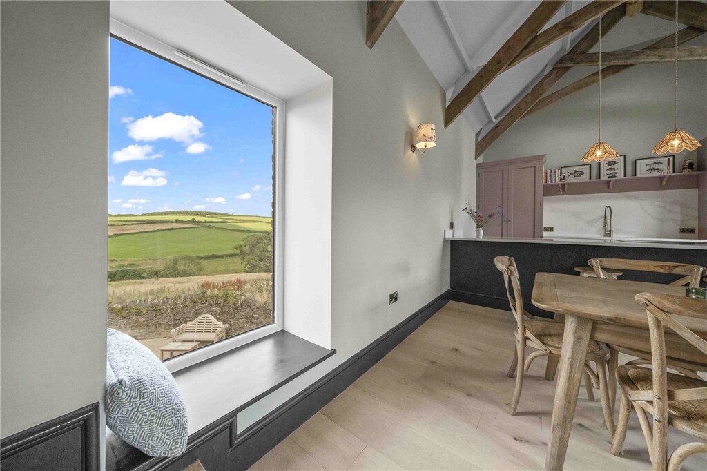 This contemporary 4-bedroom barn with one-bedroom annexe offers stylish living in a peaceful valley near Mothecombe Beach. A garden, courtyard and panoramic views complete this rare coastal countryside escape. Recently completed and nestled in a picturesque and serene valley setting just minutes from Mothecombe Beach, this newly converted barn offers a luxurious, modern and stylish 4-bedroom property in a peaceful and scenic setting. There is also a garden, courtyard, and outstanding countryside views, and a 1-bedroom annexe.