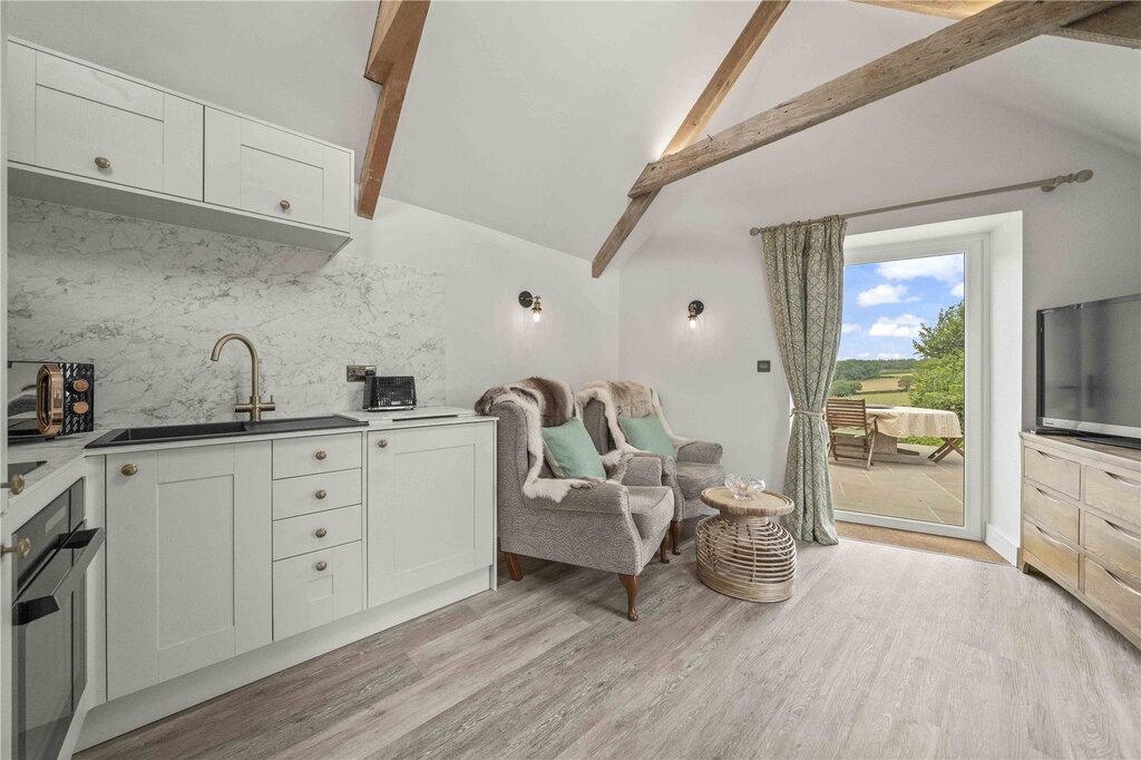 The property has a right of access via a long private lane with fields either side, shared only by one other property and the neighbouring farmer/estate. This luxurious and modern newly converted detached 4-bedroom barn offers a tranquil retreat for those looking to get away from the hustle and bustle of life. The Linhay not only offers stylish interiors and period features, but has also been converted over the last few years to make the most of the outstanding forest and wildlife-filled valley views. Attention to detail and the provision of high eco credentials has resulted in a much-coveted EPC rating A. The contemporary open-plan living, kitchen and dining area benefits from an exceptionally well-appointed and stylish kitchen and cosy sitting area. Its elevated first-floor position enables the beautiful surroundings to be fully appreciated. On the ground floor are four bedrooms, two en-suite, and a family shower room. Additionally, there is a separate annexe that offers versatile living options, including additional guest accommodation, multi-generational living or income potential. Perfect for those seeking a stylish and contemporary countryside retreat, this property is a true gem waiting to be discovered.
