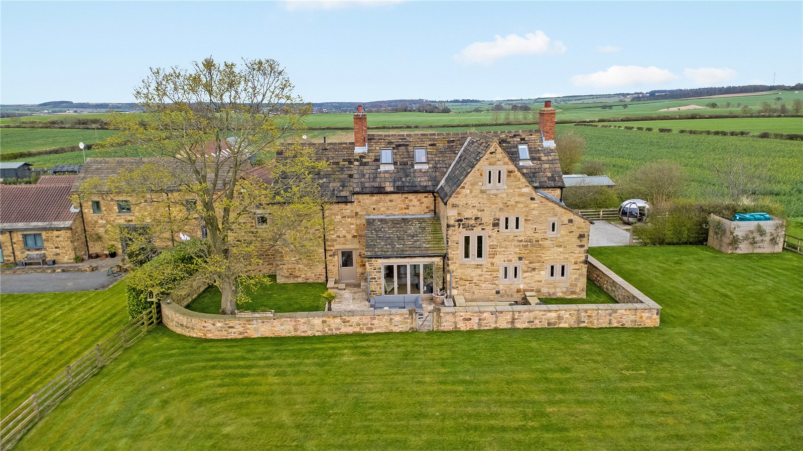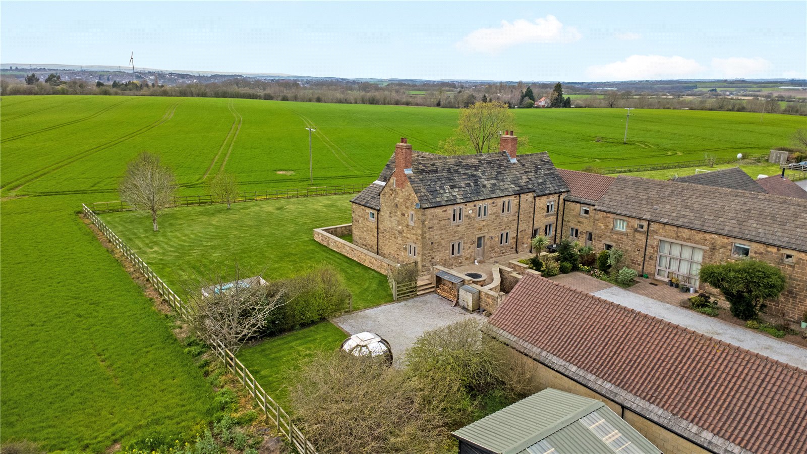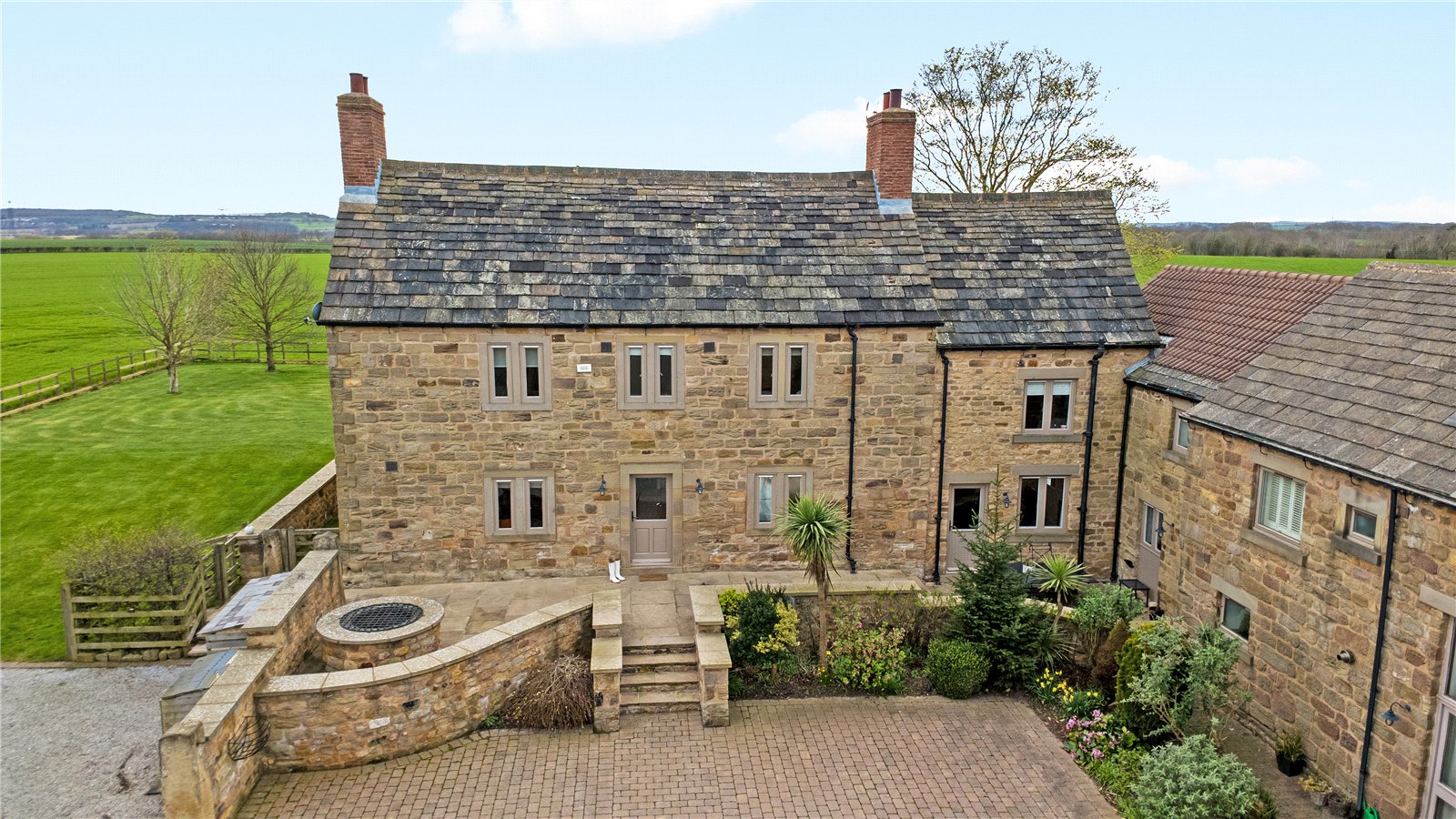Holroyd Miller have pleasure in offering for sale "The Farmhouse" a truly imposing and impressive Grade Two Listed former Farmhouse, occupying an enviable position on the edge of Badsworth village forming part of a superb development which offers stunning open views across farmland and offering extensive accommodation over three levels, retaining character and charm but at the same time offering a move with a minimum of fuss, presented to the highest of standards and offering a truly enviable home ideal for the family or those wishing to entertain. The superb interior briefly comprises impressive entrance reception hallway with access to cloakroom, ground floor home office and useful keeping cellar, living room currently used as a home gym with feature full height glass wall with exposed beam work, family room opening to garden room making the most of the views with bi-folding doors leading onto the formal gardens, formal dining room with tiled floor and beam ceiling ideal for those wishing to entertain which then opens through to a superbly appointed breakfast kitchen with tiled floor with underfloor heating, sympathetically fitted in a farmhouse style with granite worktops, integrated appliances, guest bedroom suite give access to its own private staircase with vaulted ceiling and roof trusses, ensuite shower room. Main first floor landing with master bedroom with feature exposed stonework, superb views, adjacent dressing room with ample hanging space, ensuite bathroom with feature free standing bath with claw feet, three further bedrooms on this floor, house bathroom with feature free standing chrome bath. To the second floor, attic room ideal for home office or teenage suite with ample space for bedroom. Outside, large double garage with adjacent storage, stone paved patio and parking area, extensive patio and entertaining space with adjacent generous lawn gardens with mature hedges and fencing retaining a high degree of privacy making the most of the extensive views. A truly enviable home located conveniently for the M62/A1 for those travelling throughout the region, yet well placed for excellent local schools. For those looking for complete privacy and the country life. Look No Further!! Offered with No Chain.