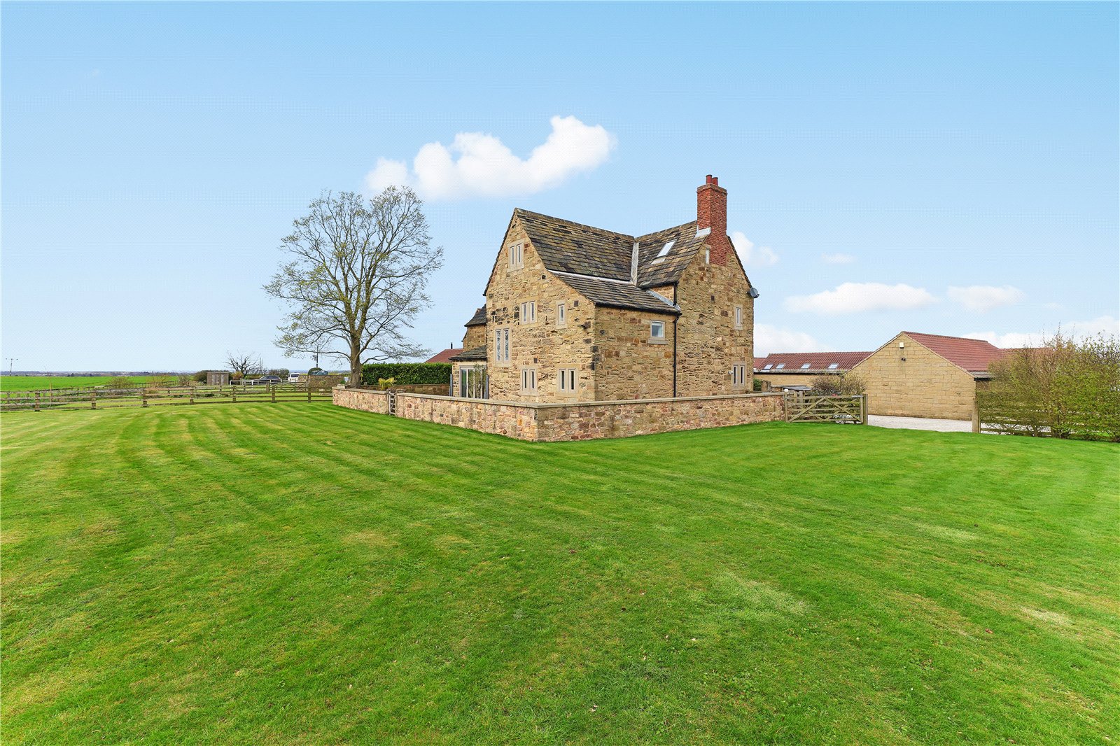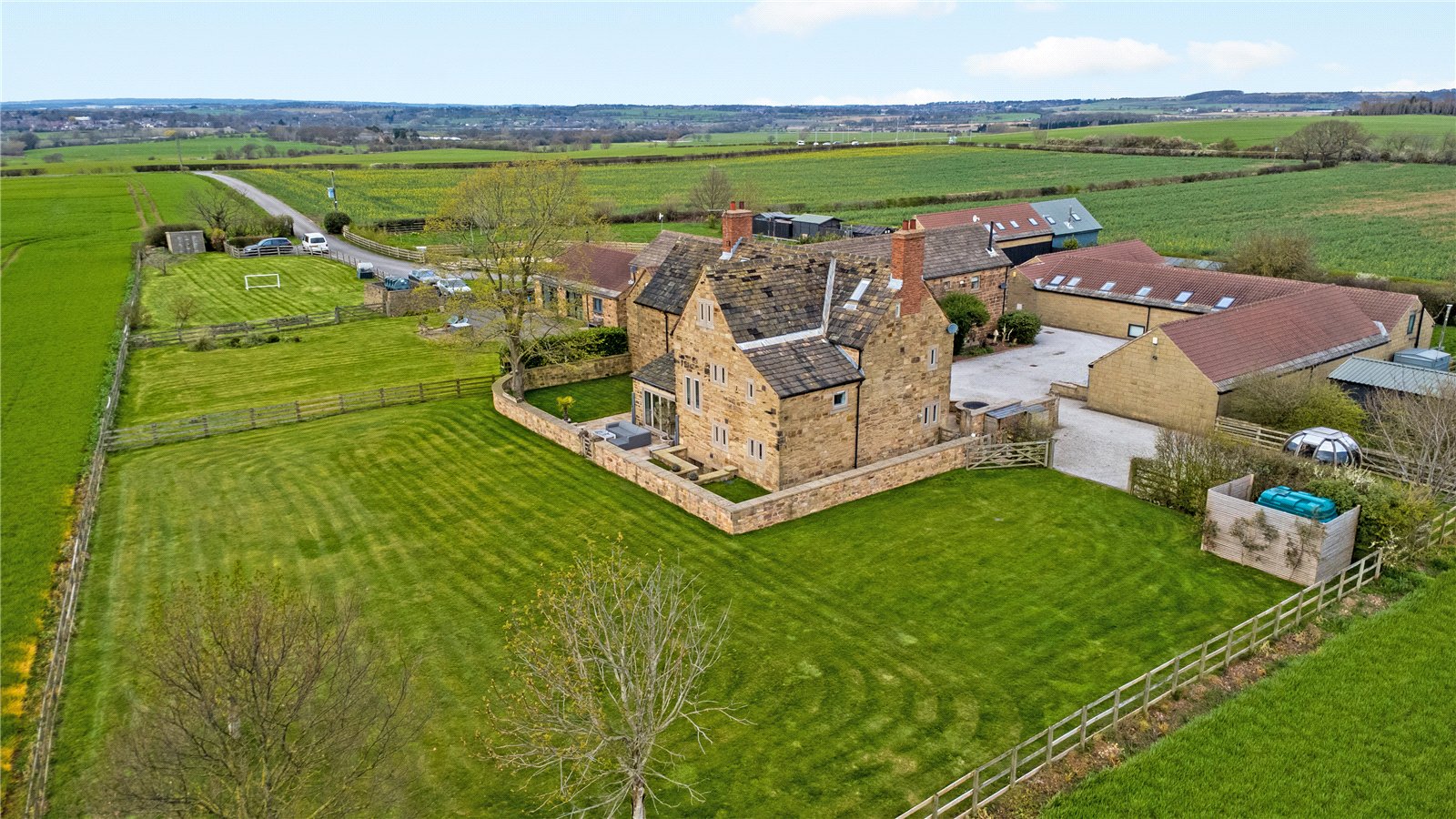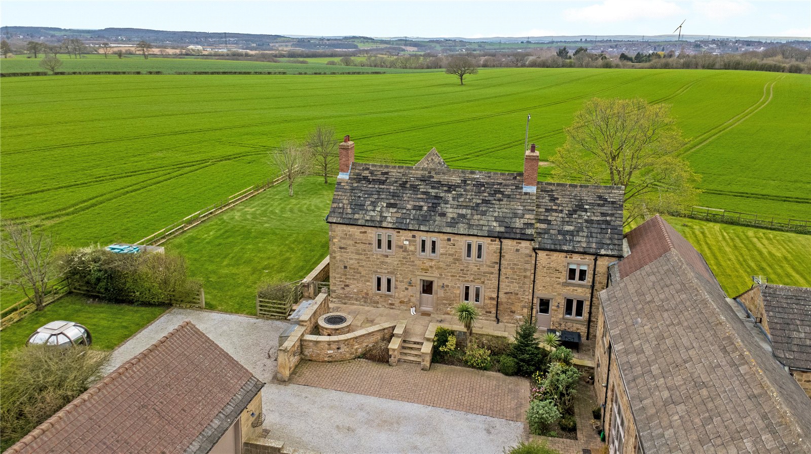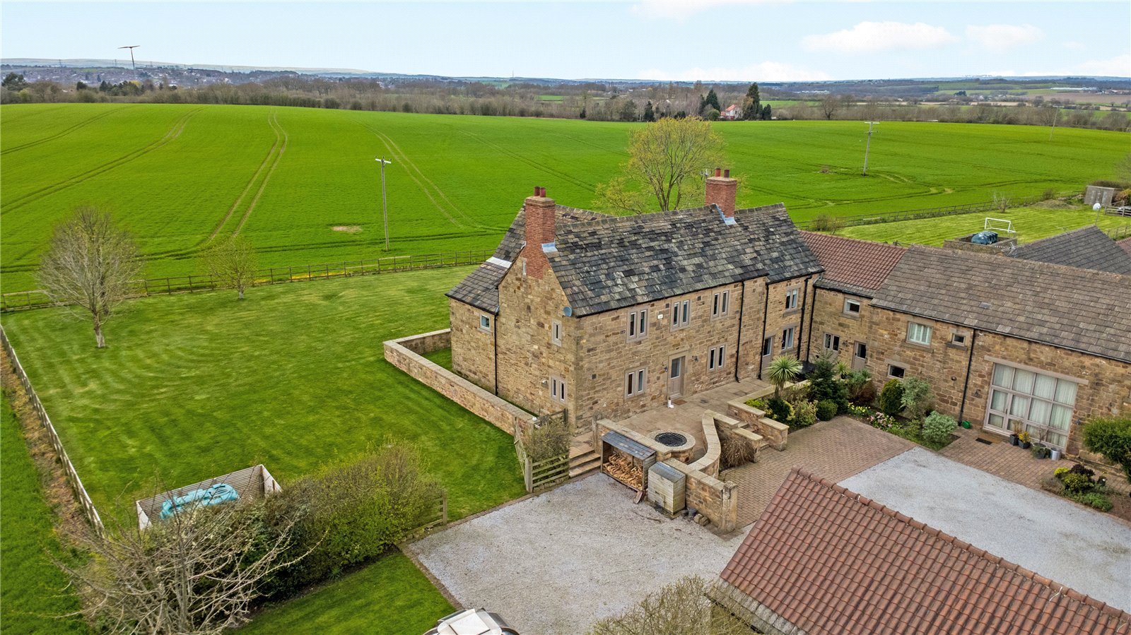 Holroyd Miller have pleasure in offering for sale "The Farmhouse" a truly imposing and impressive Grade Two Listed former Farmhouse, occupying an enviable position on the edge of Badsworth village forming part of a superb development which offers stunning open views across farmland and offering extensive accommodation over three levels, retaining character and charm but at the same time offering a move with a minimum of fuss, presented to the highest of standards and offering a truly enviable home ideal for the family or those wishing to entertain. The superb interior briefly comprises impressive entrance reception hallway with access to cloakroom, ground floor home office and useful keeping cellar, living room currently used as a home gym with feature full height glass wall with exposed beam work, family room opening to garden room making the most of the views with bi-folding doors leading onto the formal gardens, formal dining room with tiled floor and beam ceiling ideal for those wishing to entertain which then opens through to a superbly appointed breakfast kitchen with tiled floor with underfloor heating, sympathetically fitted in a farmhouse style with granite worktops, integrated appliances, guest bedroom suite give access to its own private staircase with vaulted ceiling and roof trusses, ensuite shower room. Main first floor landing with master bedroom with feature exposed stonework, superb views, adjacent dressing room with ample hanging space, ensuite bathroom with feature free standing bath with claw feet, three further bedrooms on this floor, house bathroom with feature free standing chrome bath. To the second floor, attic room ideal for home office or teenage suite with ample space for bedroom. Outside, large double garage with adjacent storage, stone paved patio and parking area, extensive patio and entertaining space with adjacent generous lawn gardens with mature hedges and fencing retaining a high degree of privacy making the most of the extensive views. A truly enviable home located conveniently for the M62/A1 for those travelling throughout the region, yet well placed for excellent local schools. For those looking for complete privacy and the country life. Look No Further!! Offered with No Chain.