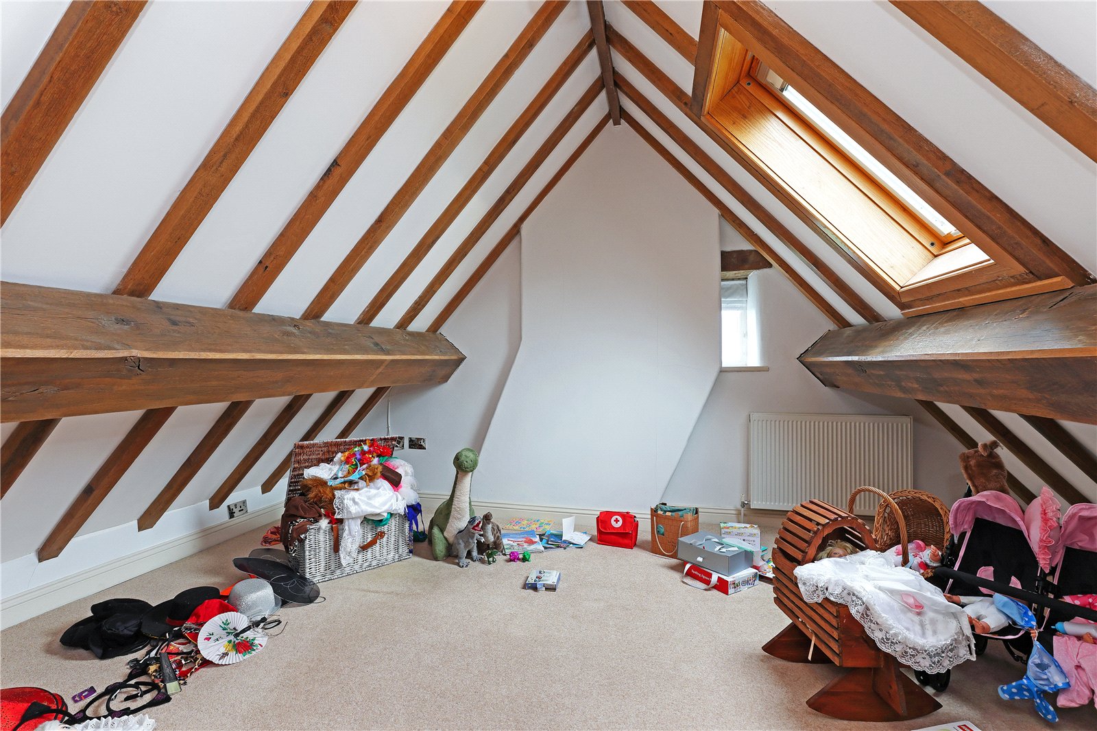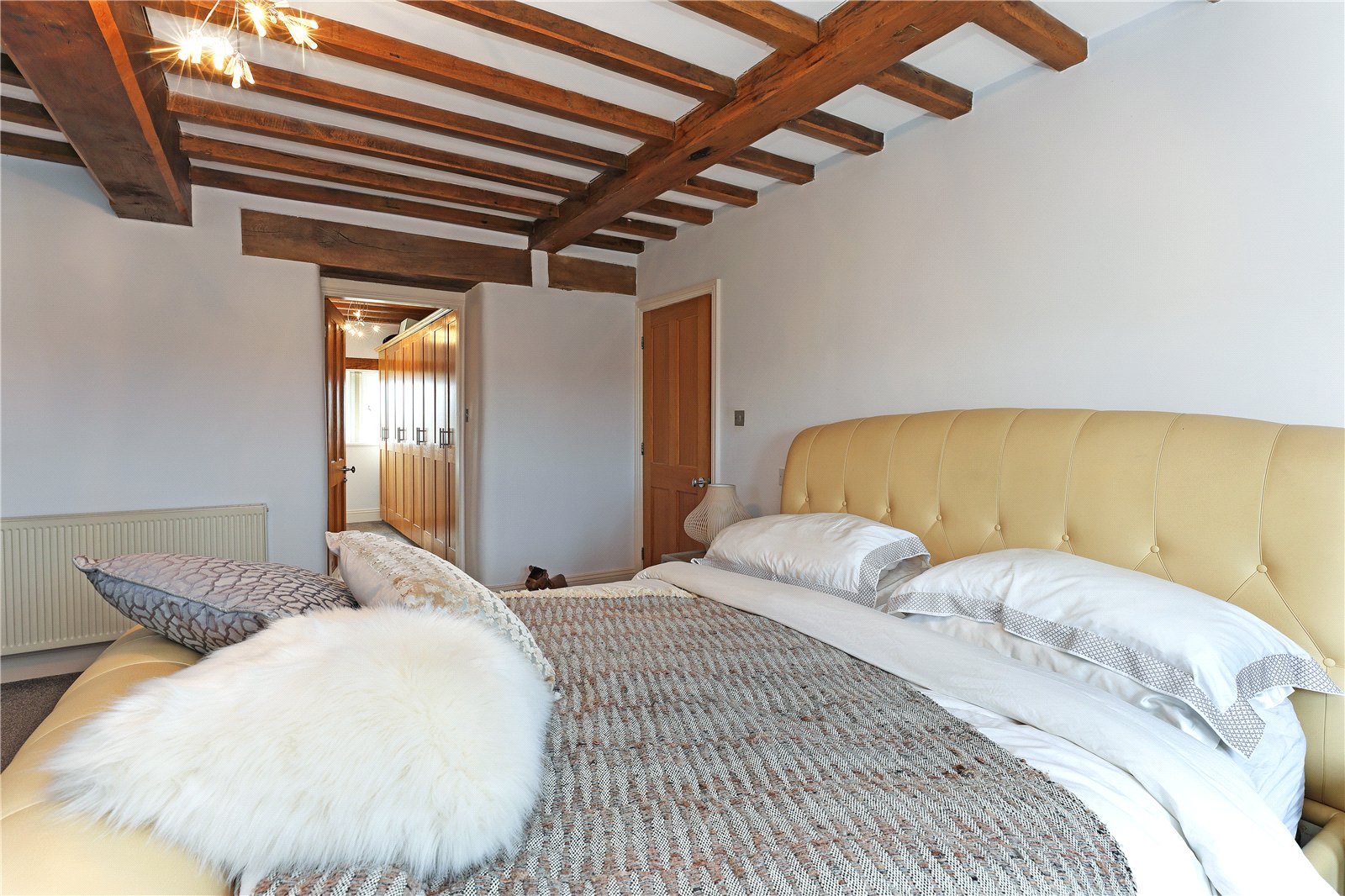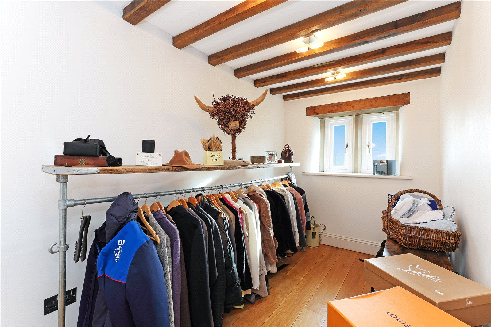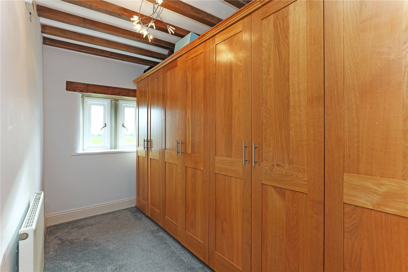 Dressing Room With a range of fitted wardrobes providing ample hanging space, exposed beam work, providing excellent storage.