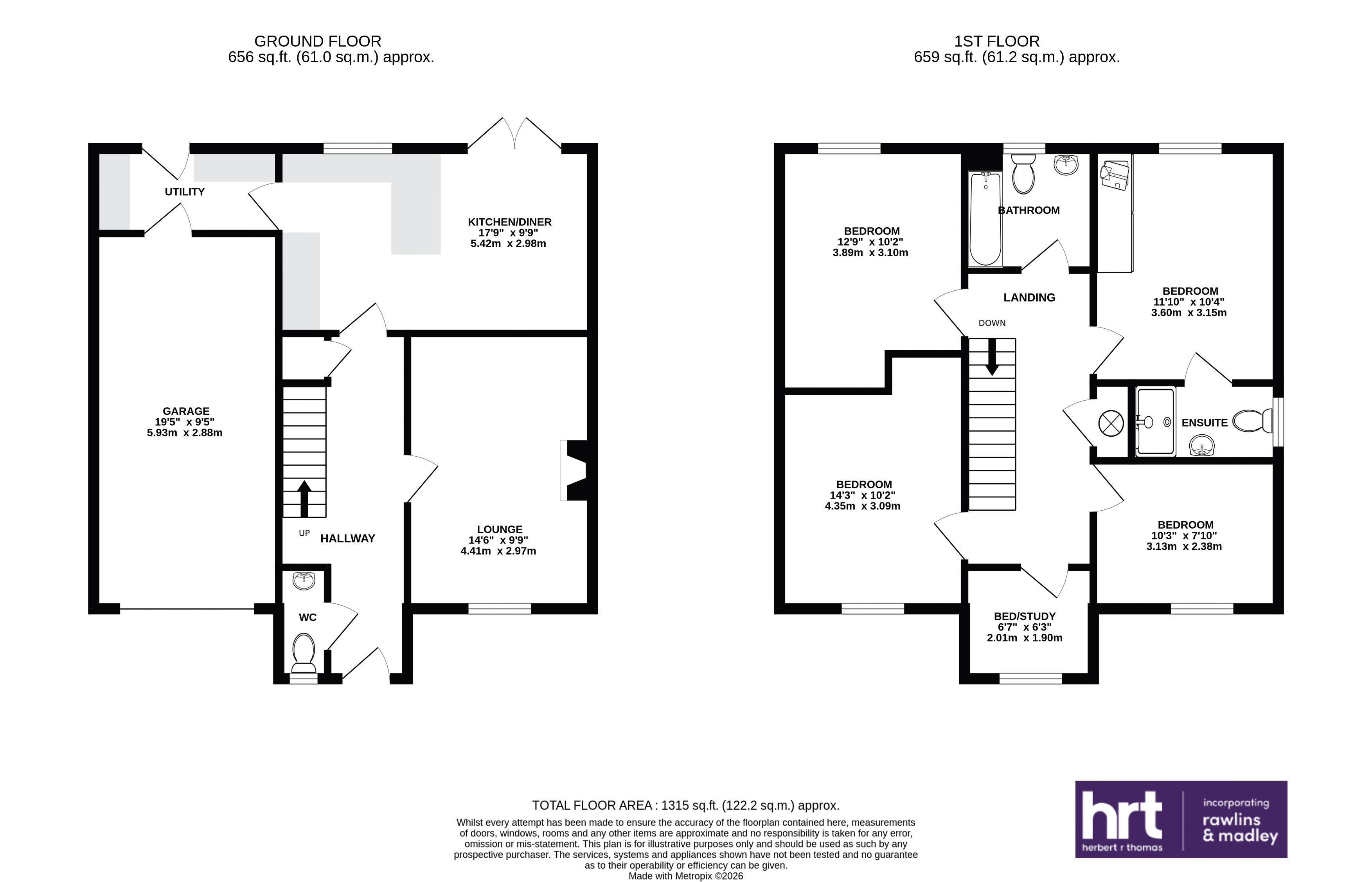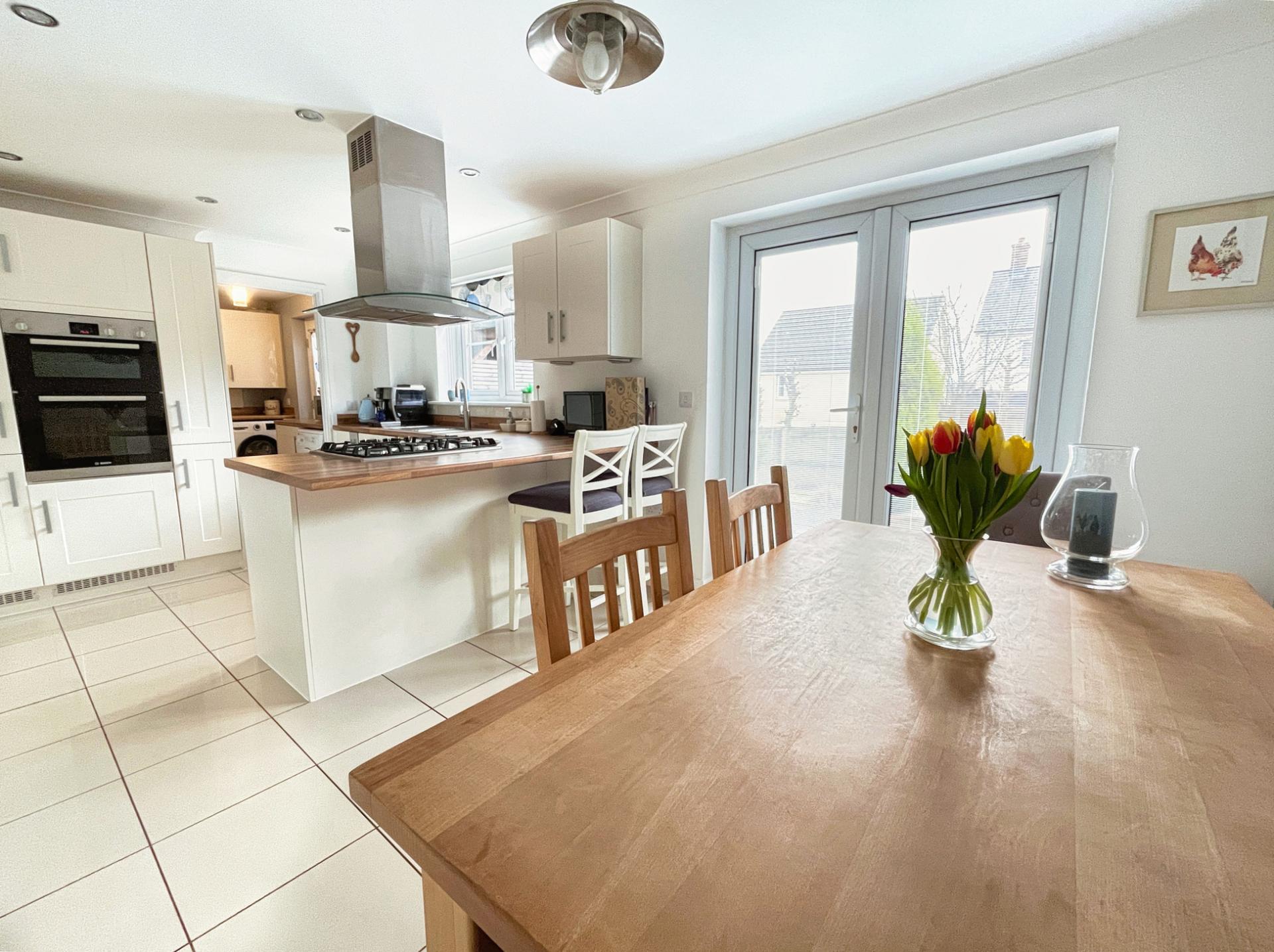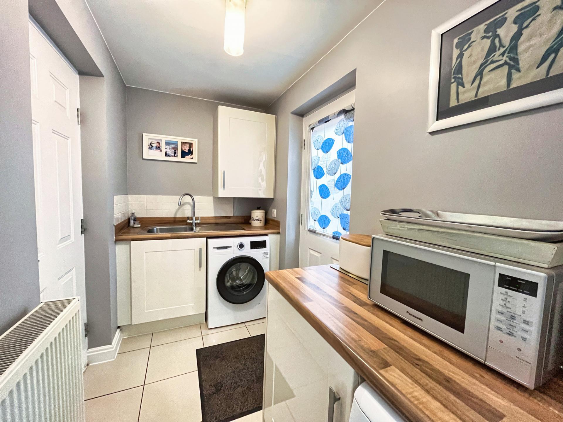 - Ground floor hall, WC, front sitting room, rear kitchen/diner with separate utility and access to integral garage.