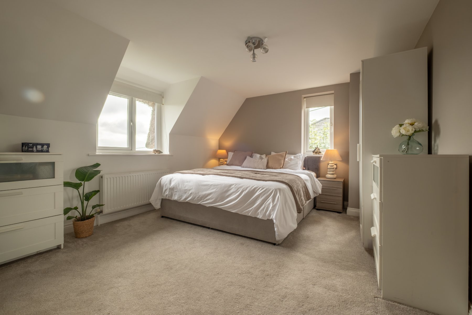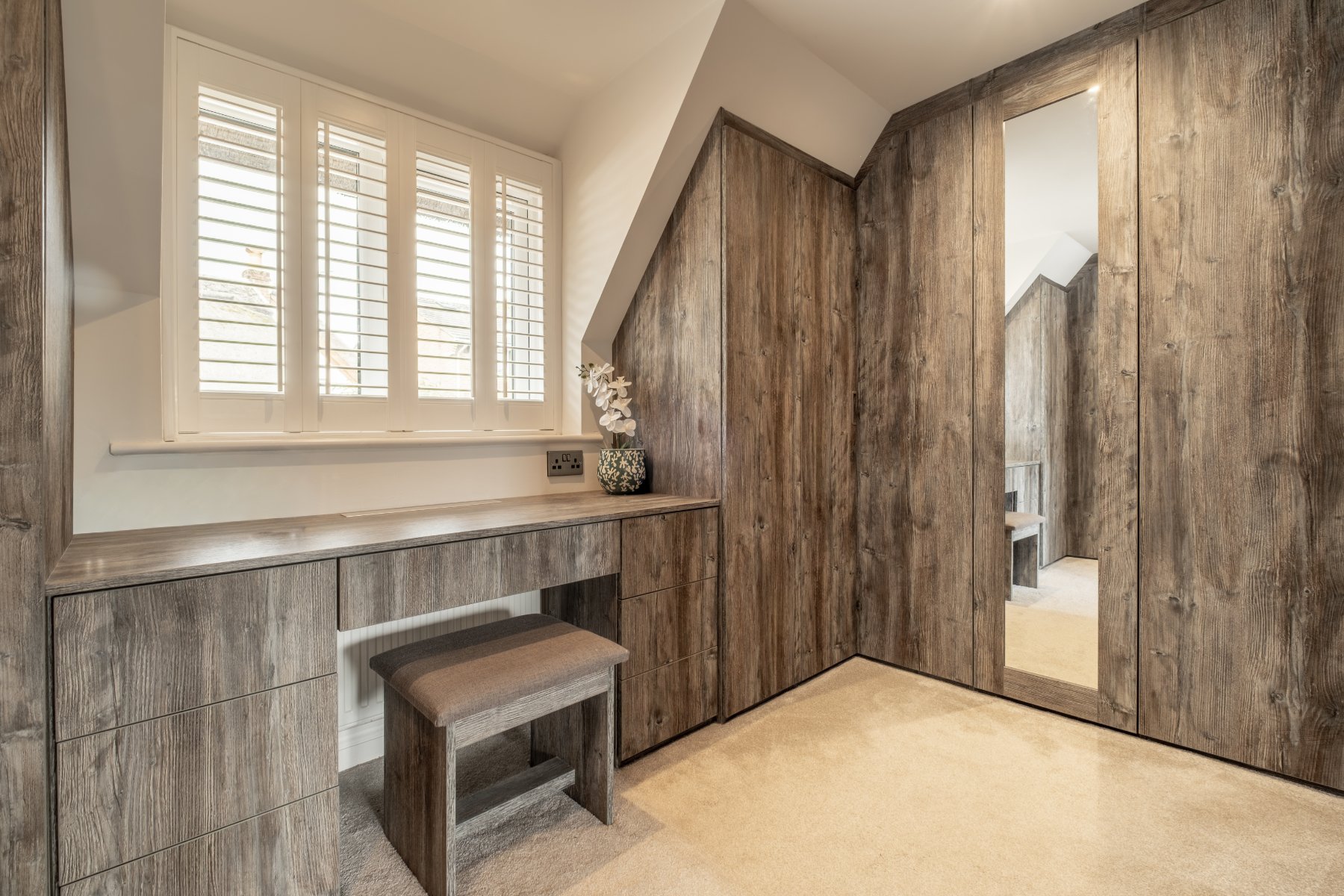 Upstairs, the PRINCIPAL BEDROOM benefits from a calm, refined feel. The DRESSING ROOM, originally the FOURTH BEDROOM, has been cleverly reconfigured to complement the principal suite beautifully, offering generous storage and an elegant sense of flow. The layout still allows for an easy return to a four-bedroom format if desired.