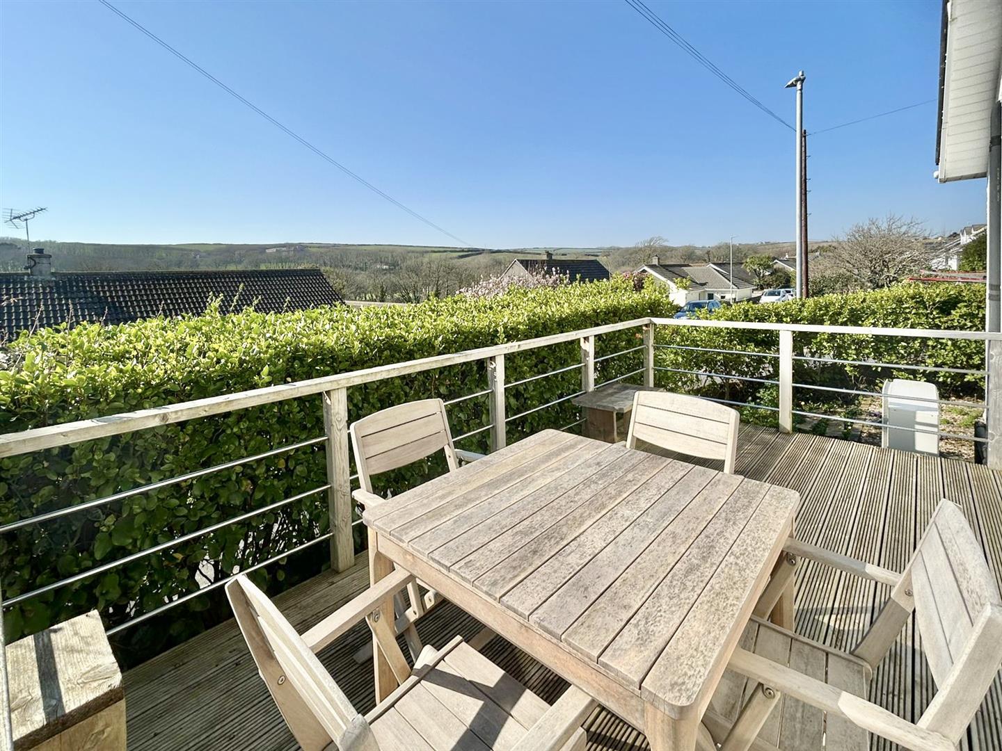 Outside - To the front of the property is a decked terrace area which enjoys views over other properties towards open countryside and would seem ideal for alfresco dining. To the rear of the residence is a garden which is laid to lawn and a driveway provides parking and leads to the garage.