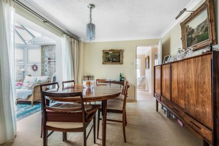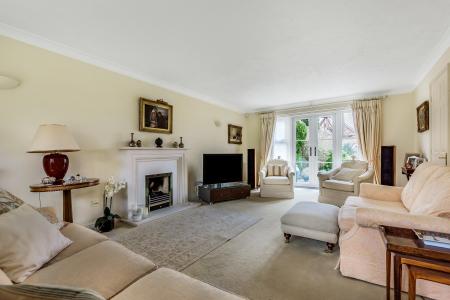 Sitting Room : A delightful dual aspect formal reception room with coal effect fireplace, 2 radiators, tv and aerial points, wall light points and door to Dining Room. Double doors to sun terrace and landscaped garden.