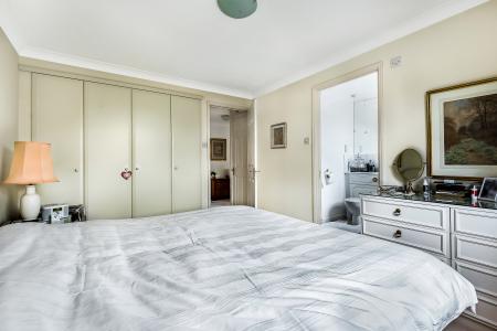 Bedroom 1 : Generous double with a wide range of built-in bespoke wardrobes with split level rails, full height rails and shelving. Radiator and tv point. Door to
