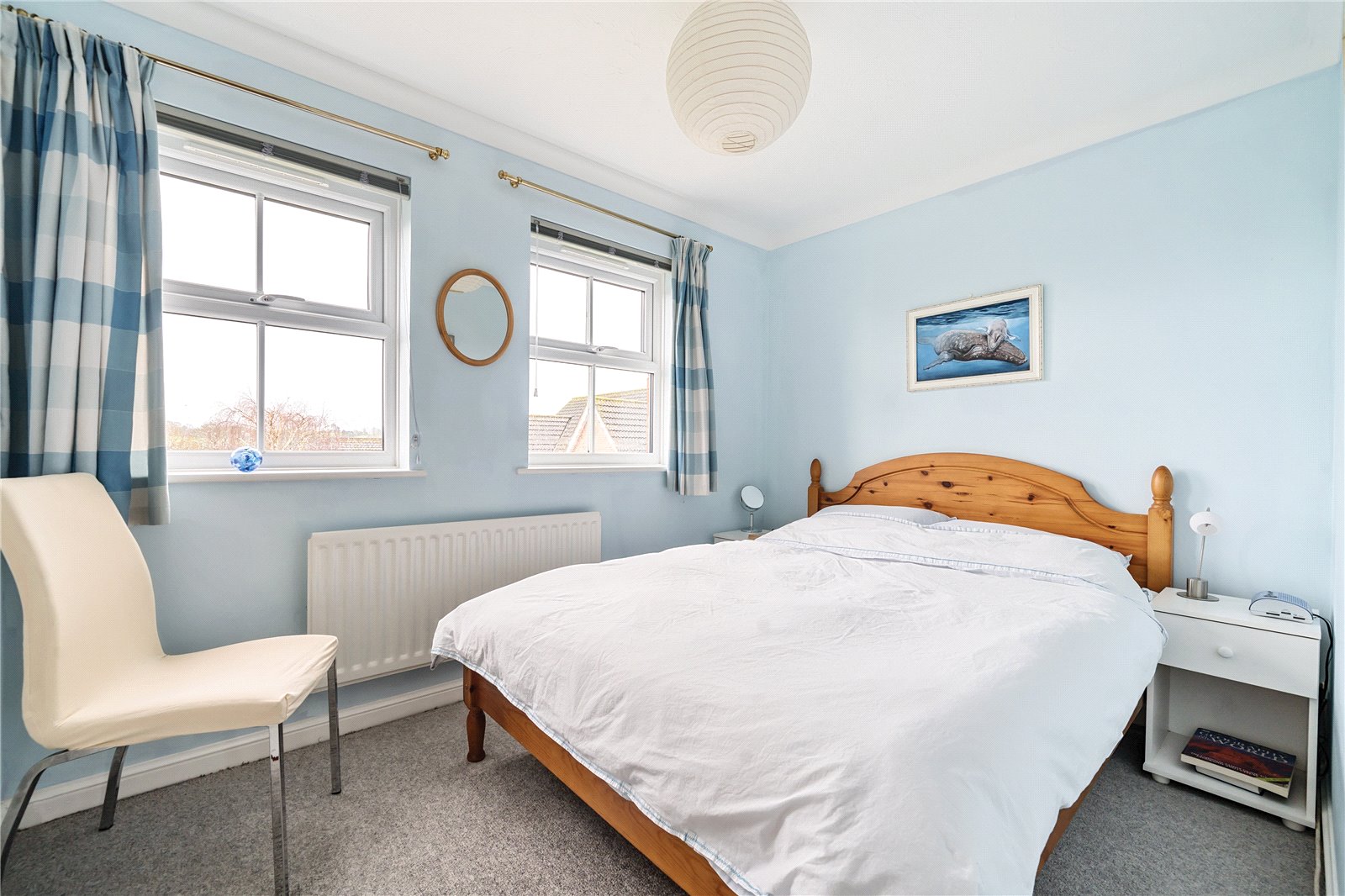 Bedroom 2 : Guest room with built-in double wardrobe, light point and radiator. Views over the garden. Door to: