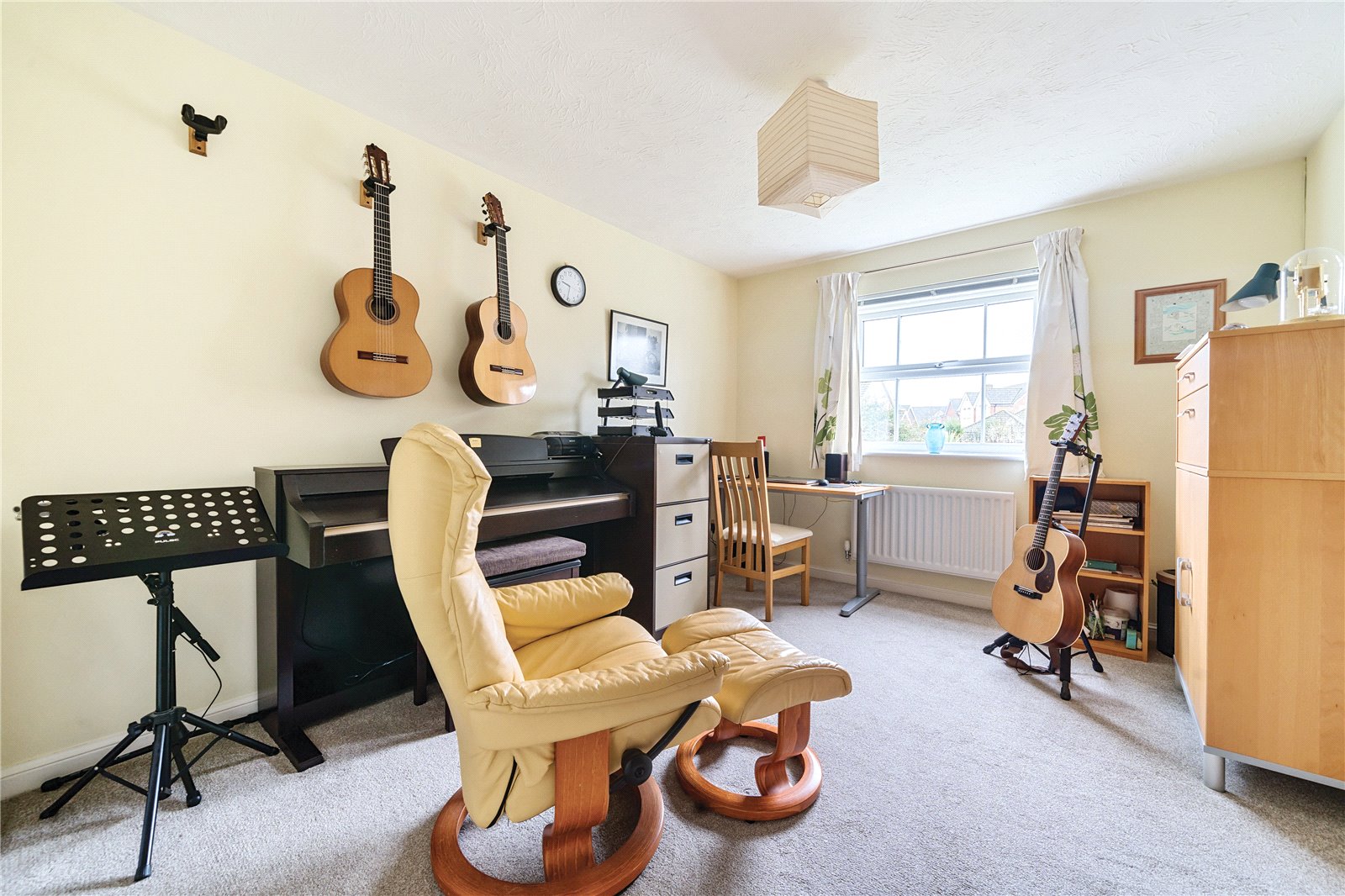 Study : Oulook to the front with some glimpse views through to fields. Radiator and light point. Ideal home office or snug/music room.