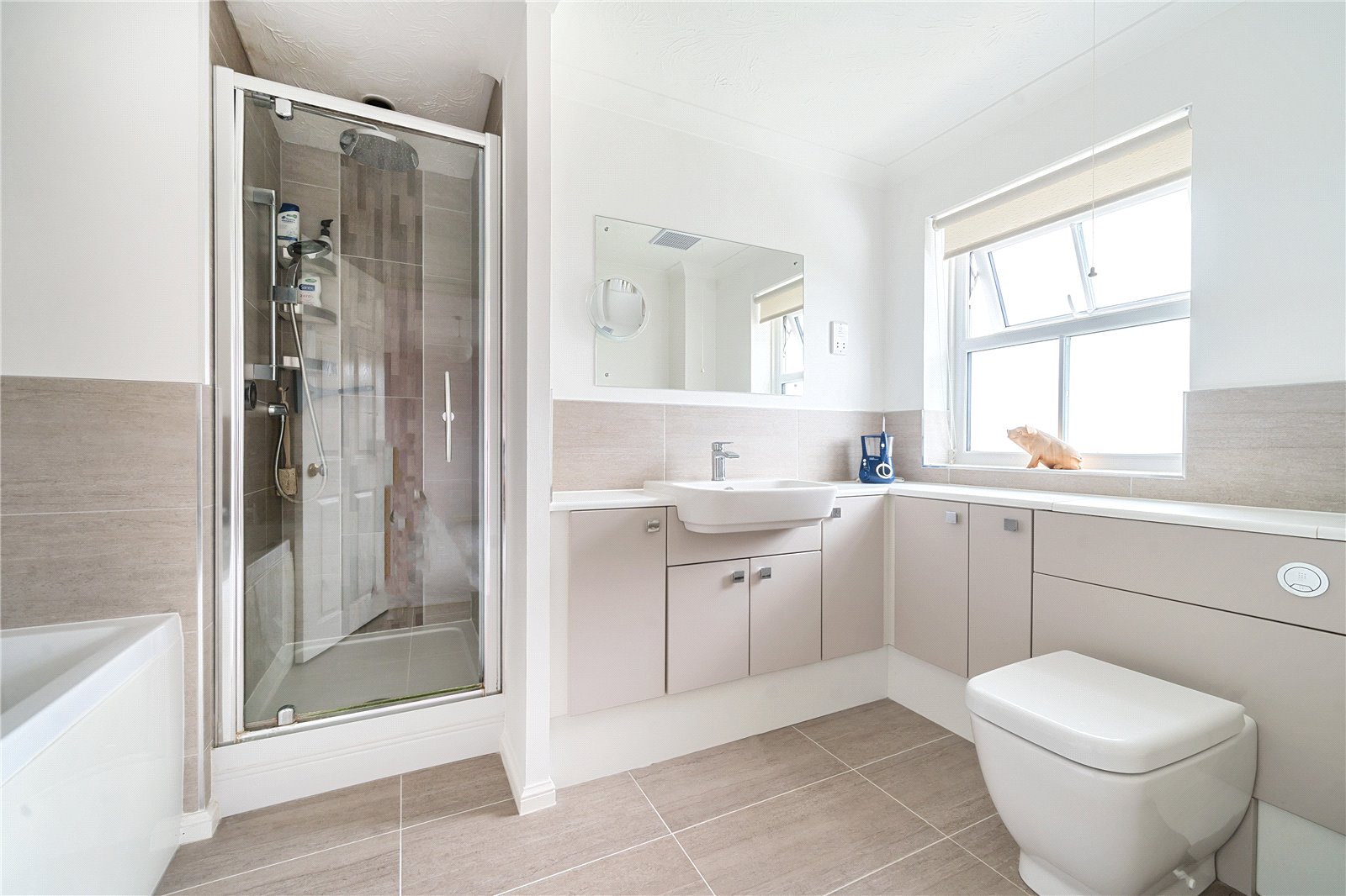 En-suite Bathroom : Re-fitted with a stylish suite of bath with mixer tap, shower enclosure, WC with concealed cistern and vanity unit with cupboards Ladder radiator, tiled floors and part tiled walls. Shaver point.