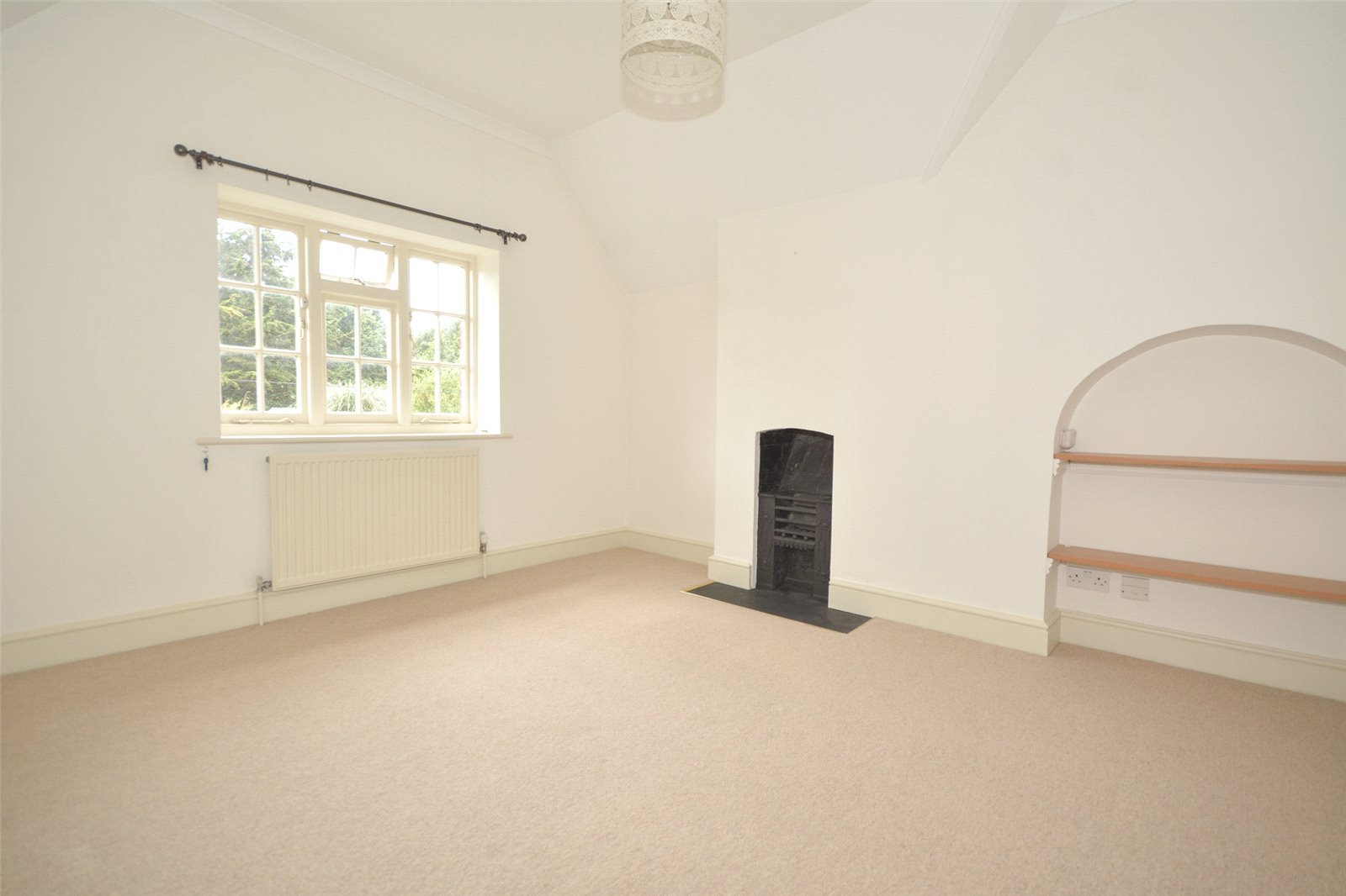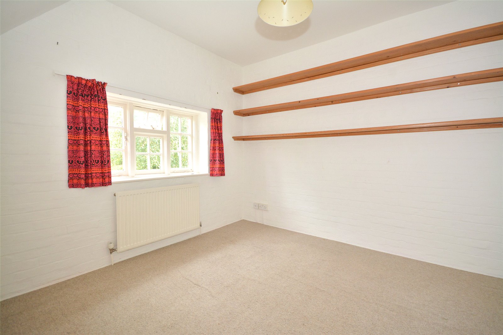Bedroom 3 : With view to the garden, shelving and radiator.