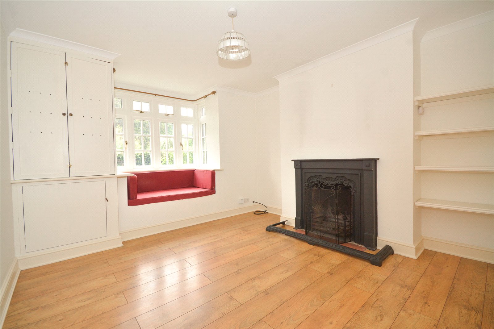 Sitting Room : Delightful formal reception room with ornate fireplace (not tested) and charming window seat. Oak style flooring, radiator, telephone point, shelving and cupboard with shelves.