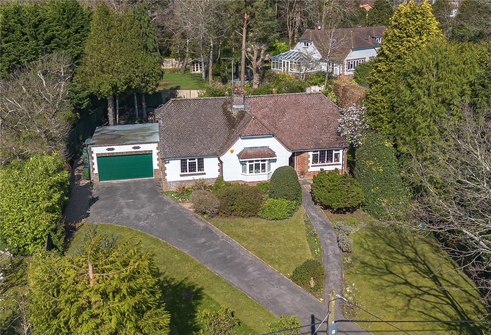 Parking : The property is approached off Crossways by a rising driveway flanked by lawn leading to generous parking for several vehicles.