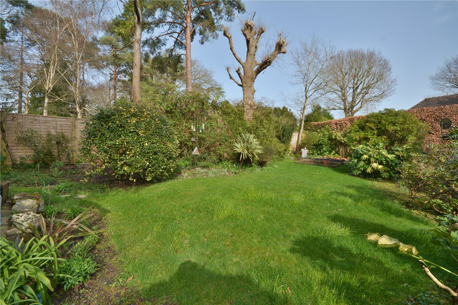 Garden : The property sits on a large well screened plot of approx. 0.3 acre with the property set well back from the lane. The front garden which is bordered by beds, fencing and shrubs is laid to lawn with well stocked beds and a raised morning sun terrace. The rear garden boasts a wide paved terrace bordered by a low wall with steps up to the shaped lawn which is bordered by delightful flower beds. There is an area for a greenhouse and compost with access to the front.