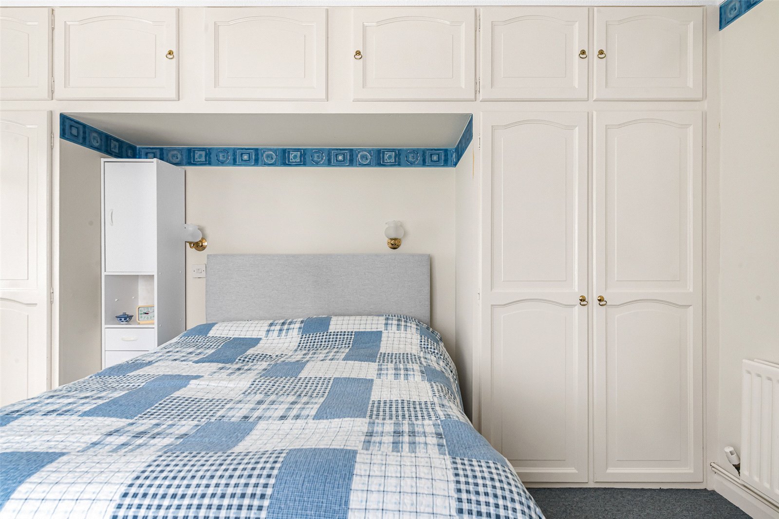 Bedroom 3: Ground floor small double with wardrobe, radiator and high level storage units.