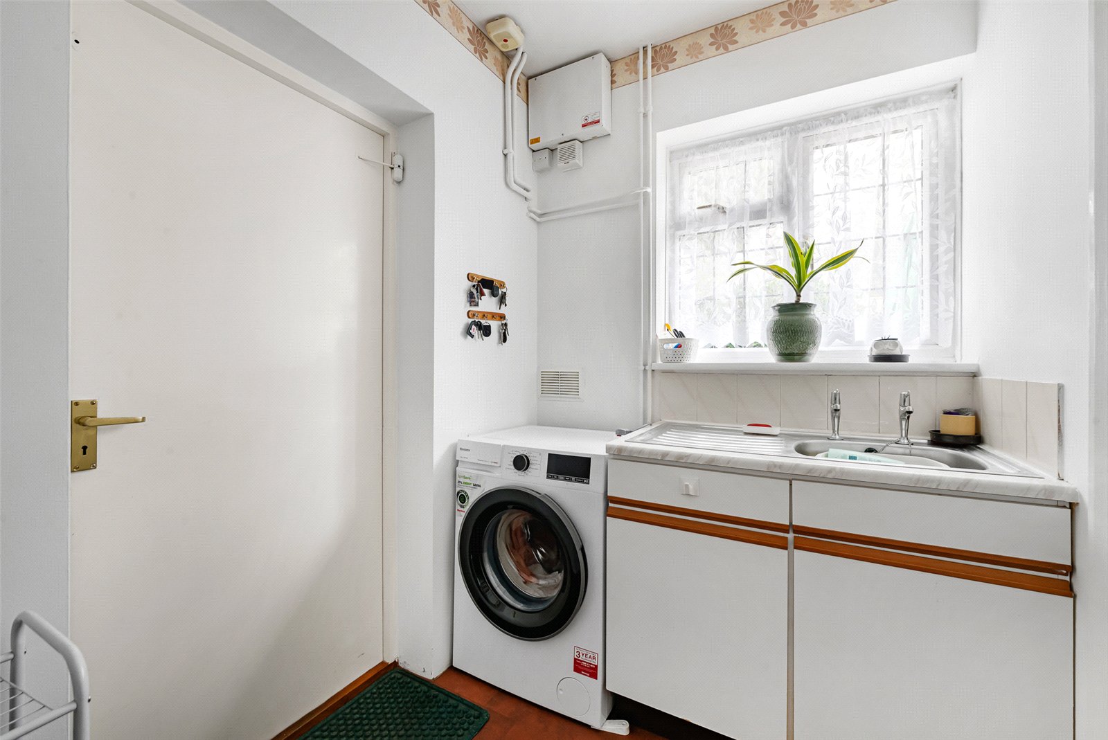 Utility Room : Range of units with worktop and sink with space for washing machine. Door to large integral garage.
