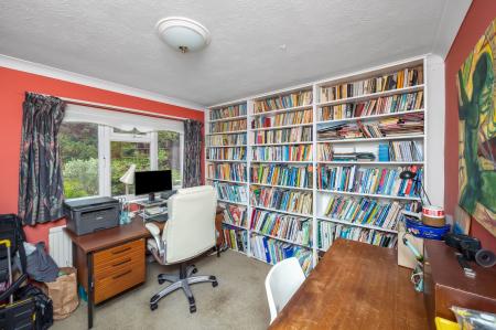 A separate home office, overlooking the garden, offers versatility as it can easily function as a guest bedroom or a cosy snug. The well-equipped kitchen is designed with fitted wall and base units, an integrated cooker, hob and extractor, and ample space for additional appliances. Adjacent to the kitchen lies a utility room providing further fitted cupboards and access to a sunroom with doors opening onto the garden.