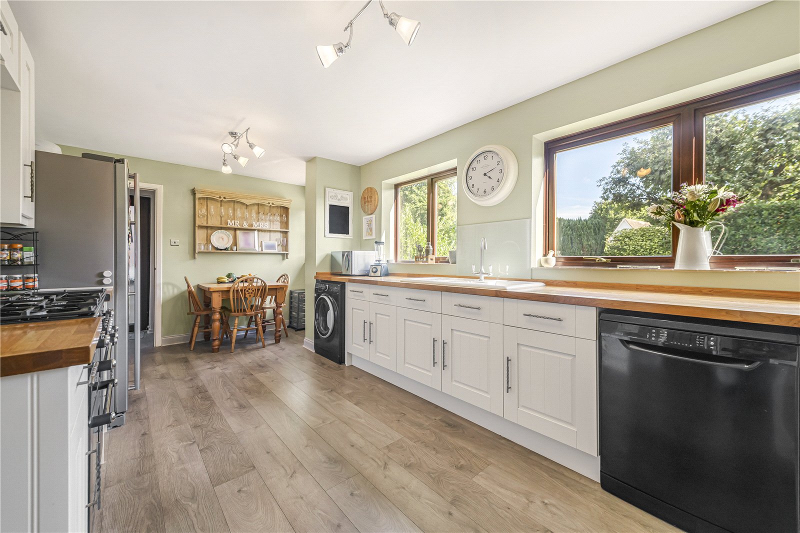Kitchen / Breakfast Room : Superb open plan design incorporating an excellent range of modern kitchen units including base units with drawers, wine rack and pull out baskets. Range cooker with 5 gas ring hob and double
