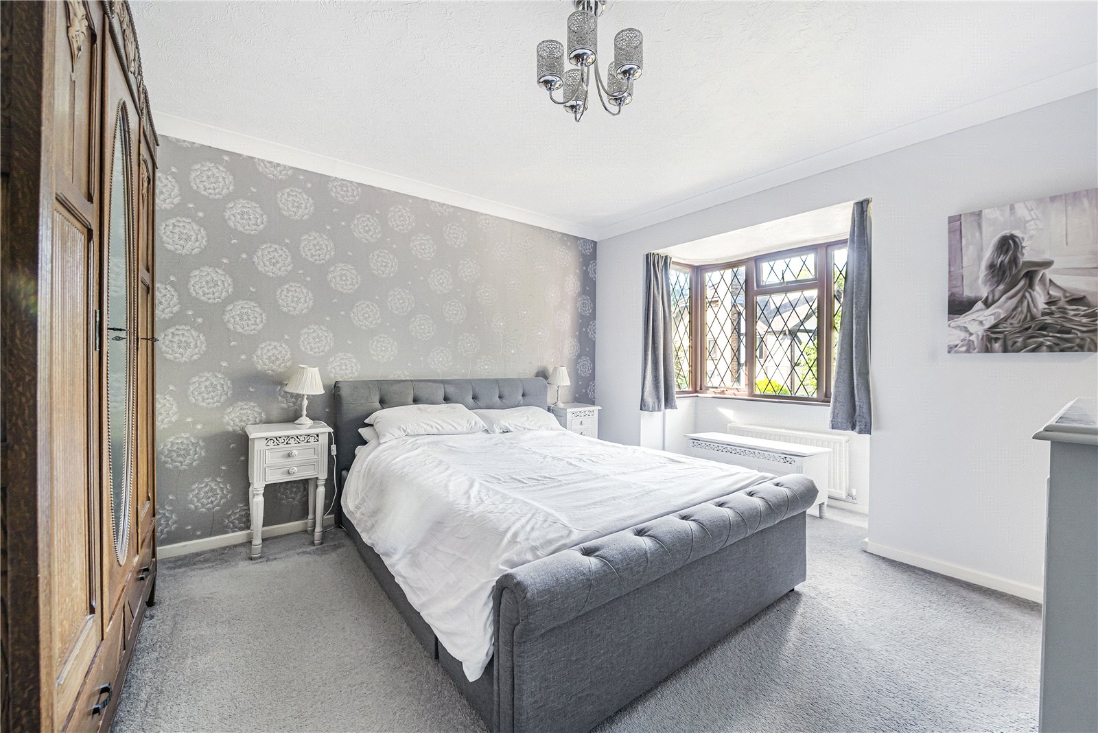 Bedroom 1 : Large double bedroom with ample space for wardrobes, feature decorative wall covering to one wall, radiator and light point. Door to :