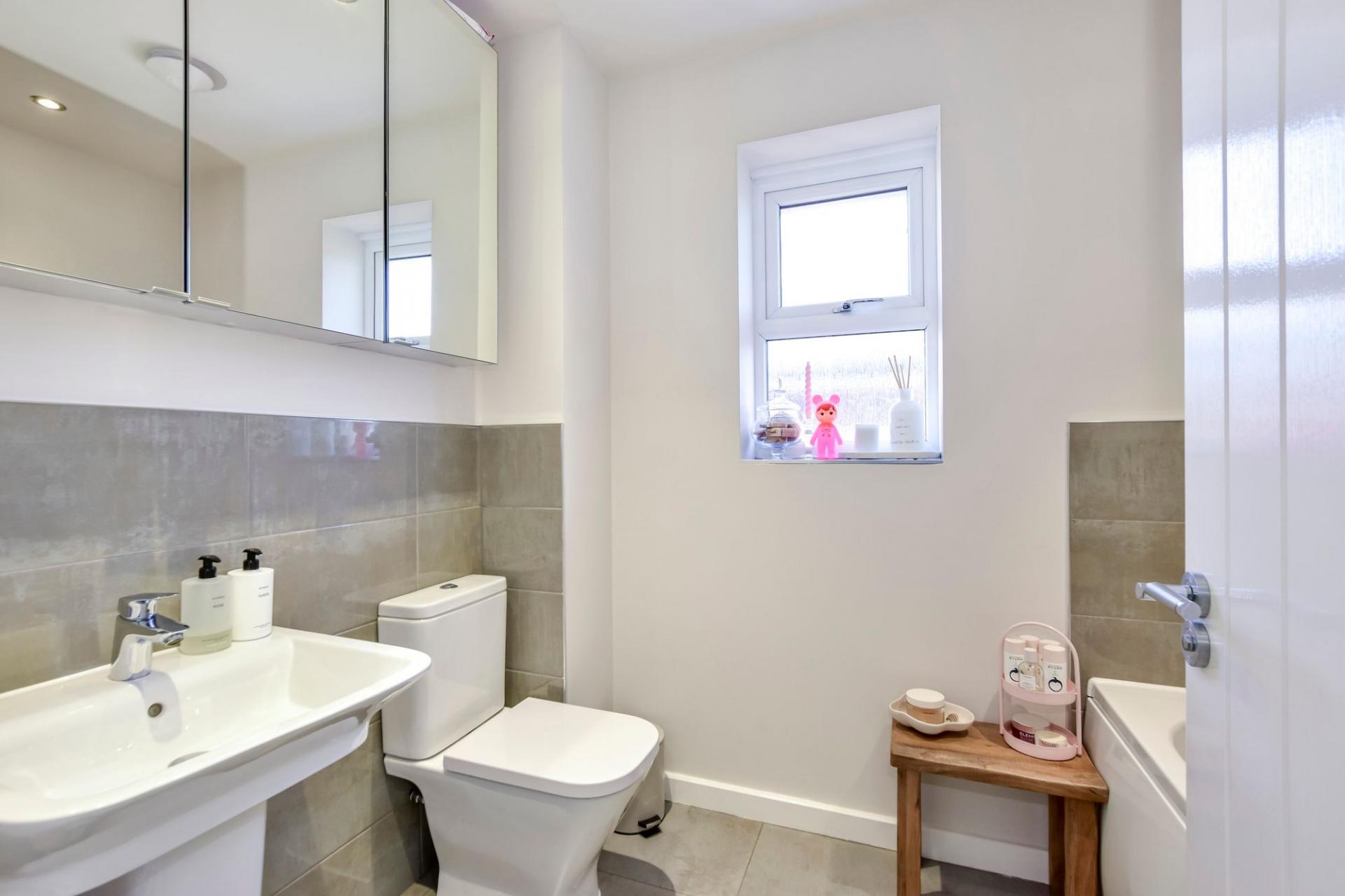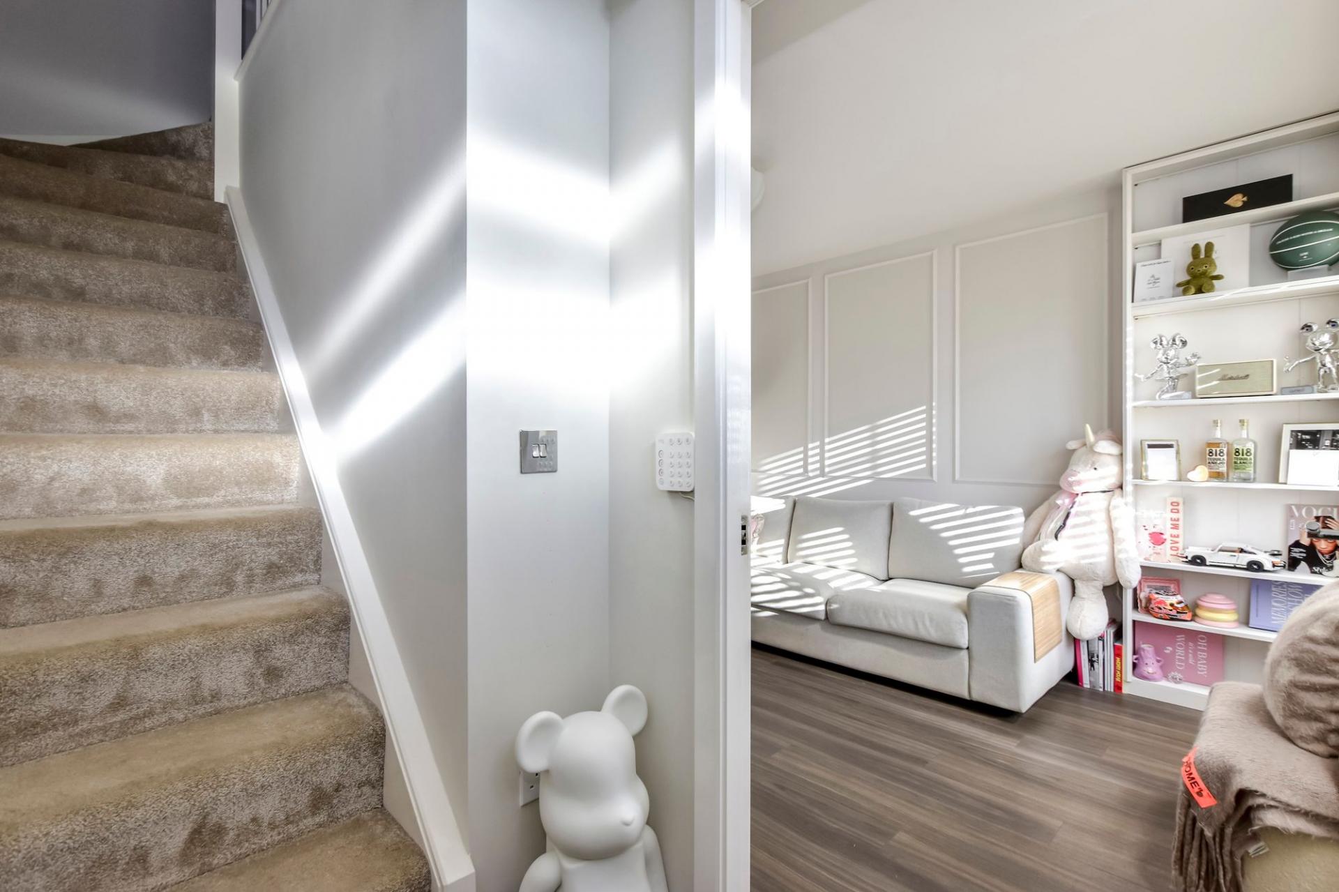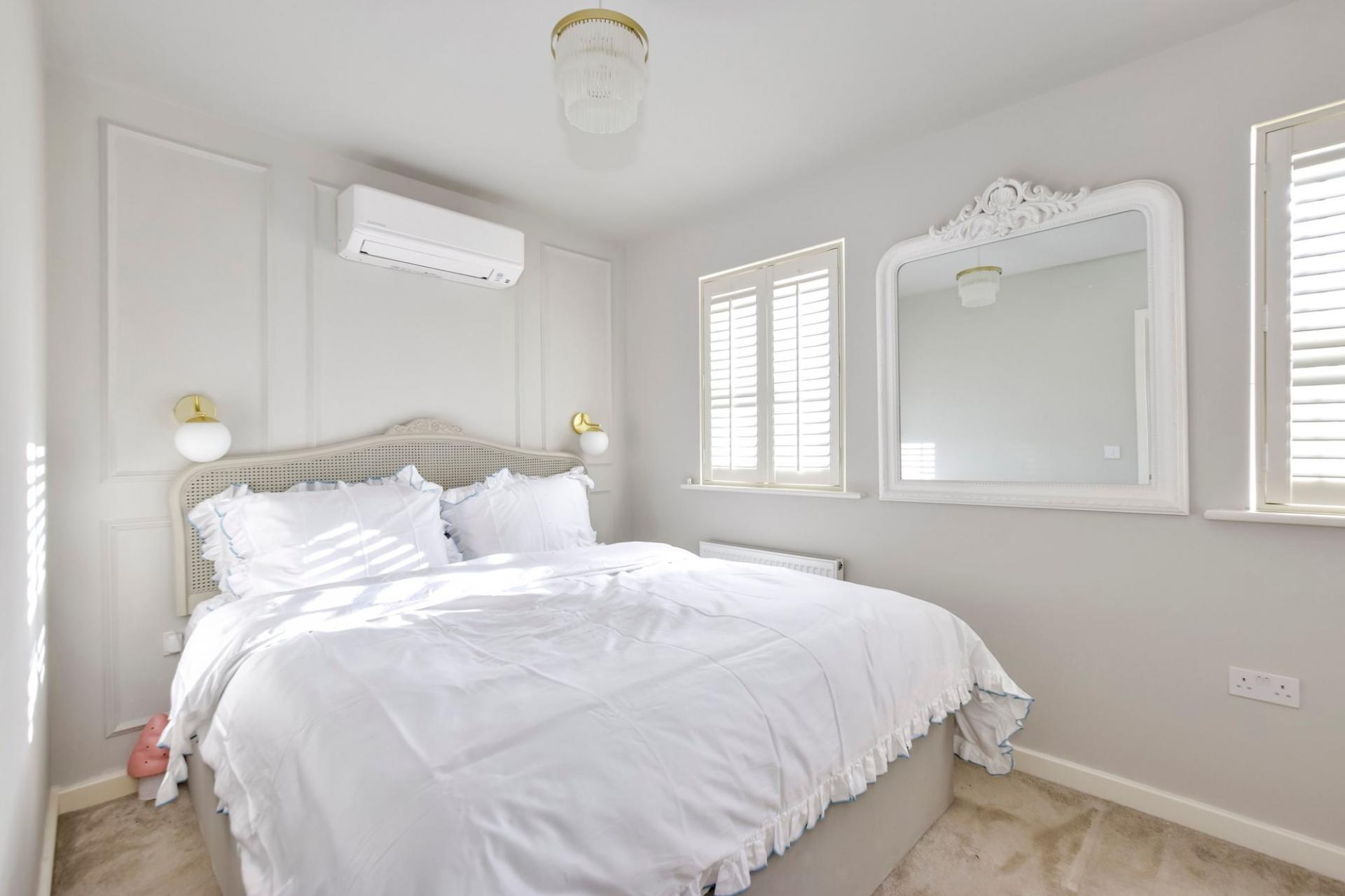 The rear garden is low maintenance and approached via full length double opening patio doors and makes for ideal al fresco dining and relaxation. There is also ample parking for two vehicles to the side of the house, making for a convenient and ‘easy living’ feel in this rarely available and ‘high spec’ freehold family home.