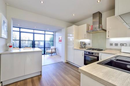 The current owners have added a rear extension, creating a fabulous dining/family area that's perfect for entertaining or family meals, flooded with natural light courtesy of their framed glass and floor to ceiling doors out. The ground floor also features a guest cloakroom, lovely living room and a contemporary, fully fitted kitchen with high-quality fittings, ample work surfaces and breakfast bar as well as a separate utility room.
