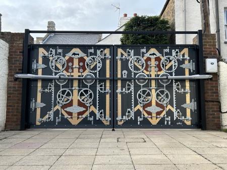 Outside, the double-tiered garden is a real asset. The lower courtyard is ideal for relaxing or dining al fresco, while the upper paved section offers access to secure off-street parking via electric rear gates a real rarity in this area.