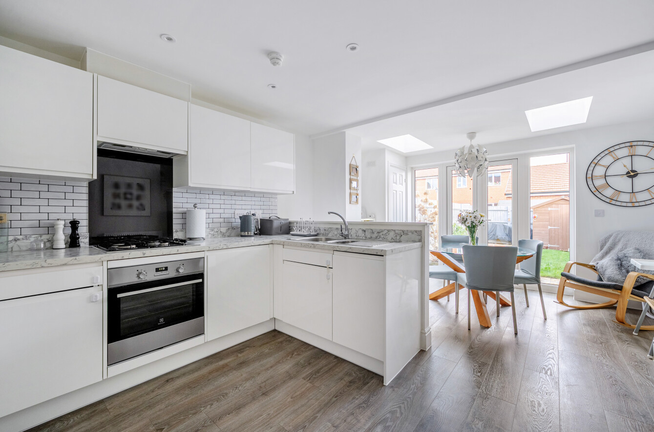 Beautifully Presented and Spacious Home on Garrett Drive, ShinfieldPresented by Richard at David Cliff Estate AgentsSituated on the highly sought-after Garrett Drive, within the prestigious Heritage Park development constructed by Charles Church in 2019, this beautifully presented two-bedroom home is a truly exceptional find. Ideal for a first-time buyer, the property perfectly combines modern living with an enviable location. Shinfield Village and its local amenities are within walking distance, while excellent transport links provide easy access to Reading and Wokingham. The M4 (Junction 11) is just moments away, offering swift connectivity to Central London.The property makes an immediate impression, with attractive kerb appeal and allocated parking conveniently positioned directly outside. Upon entering, the ground floor reveals a stunning, contemporary open-plan kitchen, dining, and living space to the rear of the home. This impressive area is particularly generous for a two-bedroom property and truly forms the heart of the home. The modern kitchen features integrated appliances and flows seamlessly into the dining and living areas, making it ideal for both everyday living and entertaining.Two skylights above the dining area, along with large French doors opening onto the garden, flood the space with natural light and enhance the sense of openness. The landscaped rear garden is well proportioned and designed for low maintenance, featuring an additional sun-trap patio area at the rear, perfect for relaxing or hosting guests. To the front of the property, a cosy and welcoming lounge provides a separate retreat, while a convenient downstairs WC completes the ground floor.Upstairs, the home continues to impress with two generously sized double bedrooms and a modern, well-appointed family bathroom. The loft has also been professionally boarded, providing valuable additional storage space.Garrett Drive is ideally positioned for both lifestyle and convenience. Surrounded by open green spaces, including the nearby cricket ground and Langley Mead Nature Reserve, the area offers a peaceful and attractive setting while remaining exceptionally well connected. With excellent public transport links and quick motorway access, this location is perfectly suited to commuters and those seeking a balance between village living and urban accessibility.This is a truly special opportunity to acquire a beautifully maintained home in a prime location, an outstanding first home and a genuine gem not to be missed.