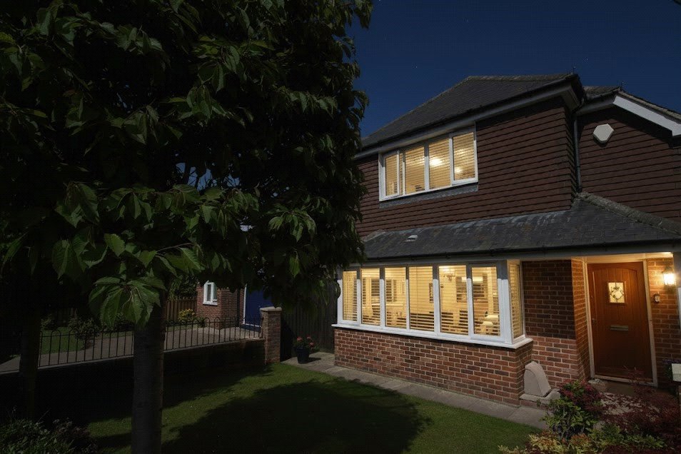 The generous entrance hall is bright, and you have the downstairs cloakroom. The large and spacious kitchen/dining room is a wonderful place to entertain, with its large bay window and range of Bosch integrated appliances. The sitting room has double French doors opening onto the lovely, landscaped garden.