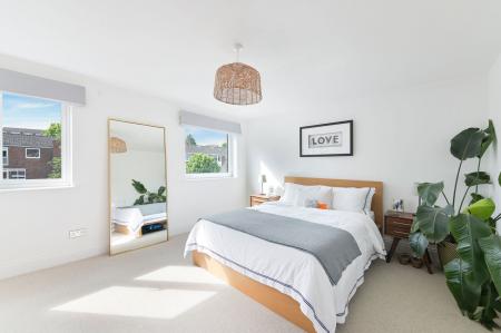 On the second floor the master bedroom is a fabulously large room with the benefit of fitted wardrobes, bedroom two is also a good sized double with a fitted cubpoard.    The bathroom is attractively fitted with a white suite, the bath has a shower and shower screen and contemporary tiles.