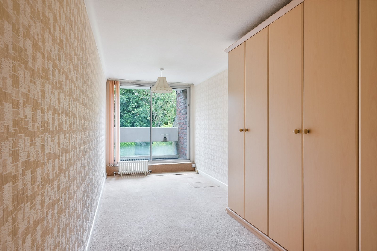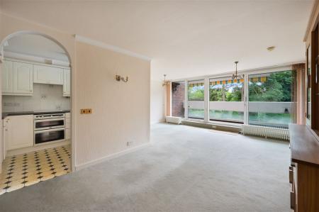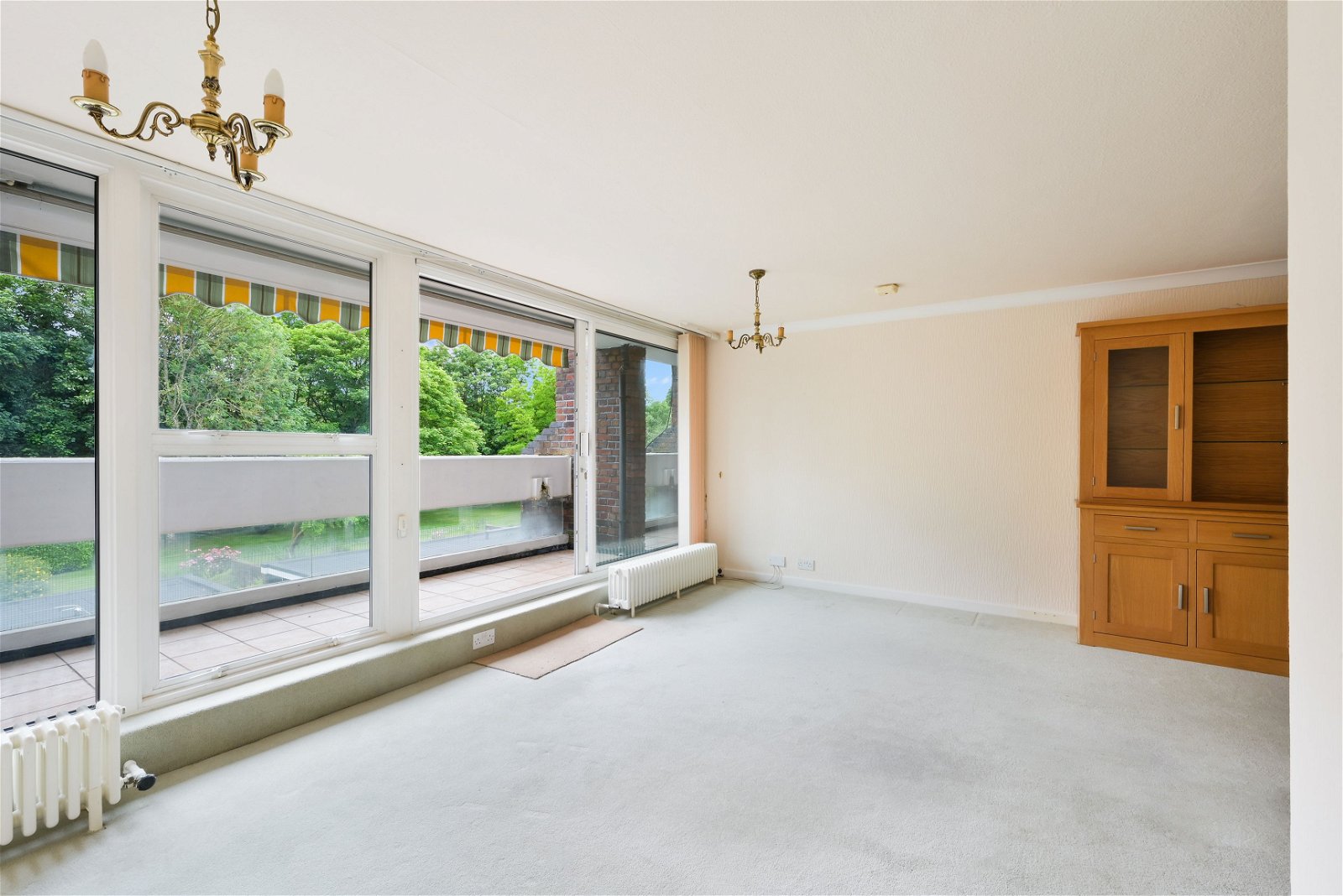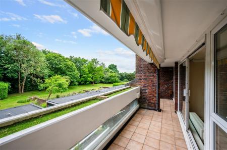 Accessed from the reception room via sliding doors is a spacious balcony, a very useable space with room for table and chairs.   The views from the balcony over the communal grounds are delightful.