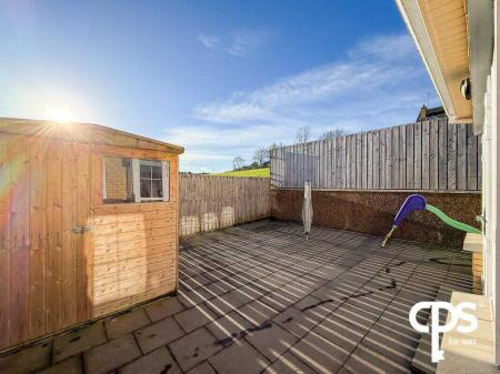 Fully enclosed rear garden with slabbed patio area, space for a shed, and side gate access. Ideal for outdoor dining, entertaining, or family use.