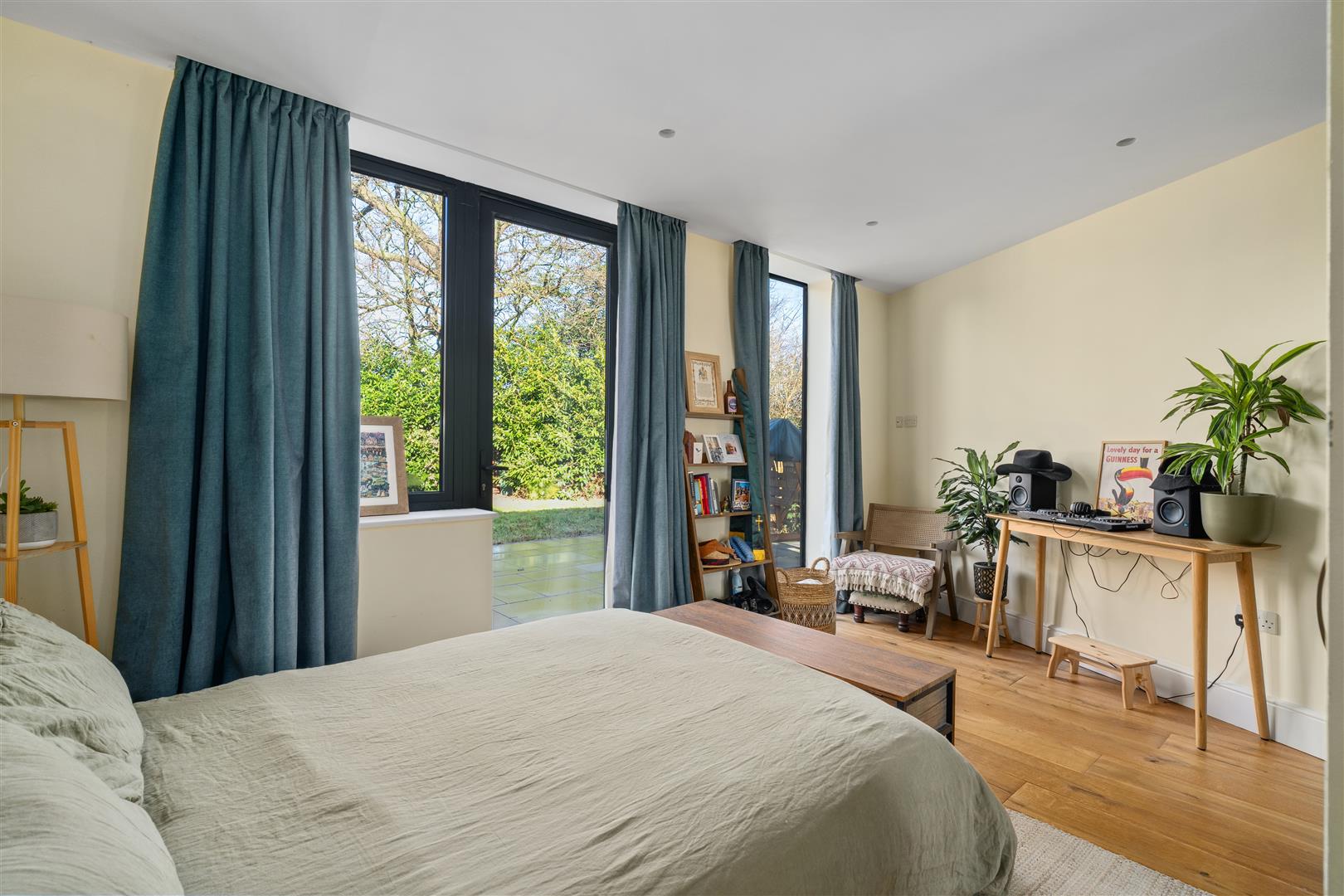 Bed 2 - Downstairs bedroom, patio door and windows to rear garden. Engineer wood flooring with under floor heating. Floor to ceiling fitted wardrobes.
