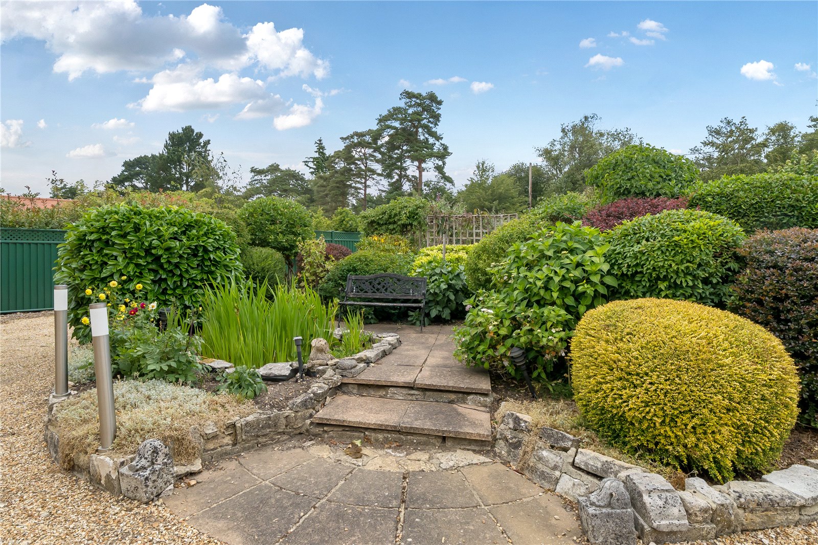 The property is approached via wrought iron gates with a sweeping gravel driveway in and out. The front garden is laid to lawn with a raised circular flower/shrub bed with a pond and seating area.