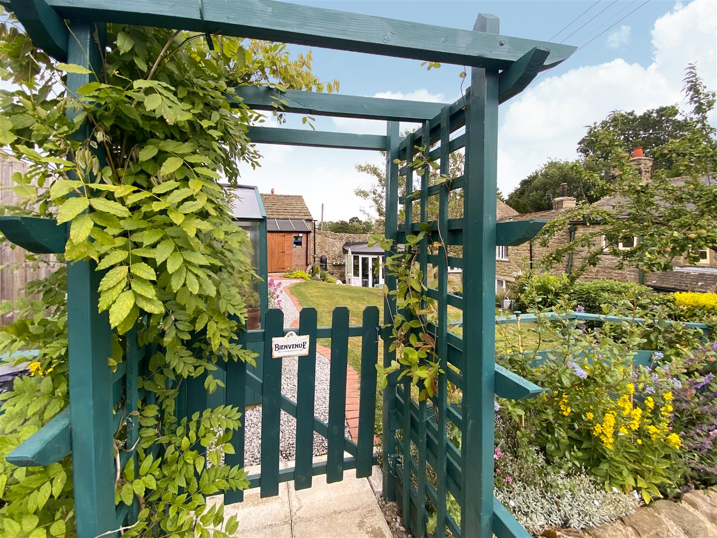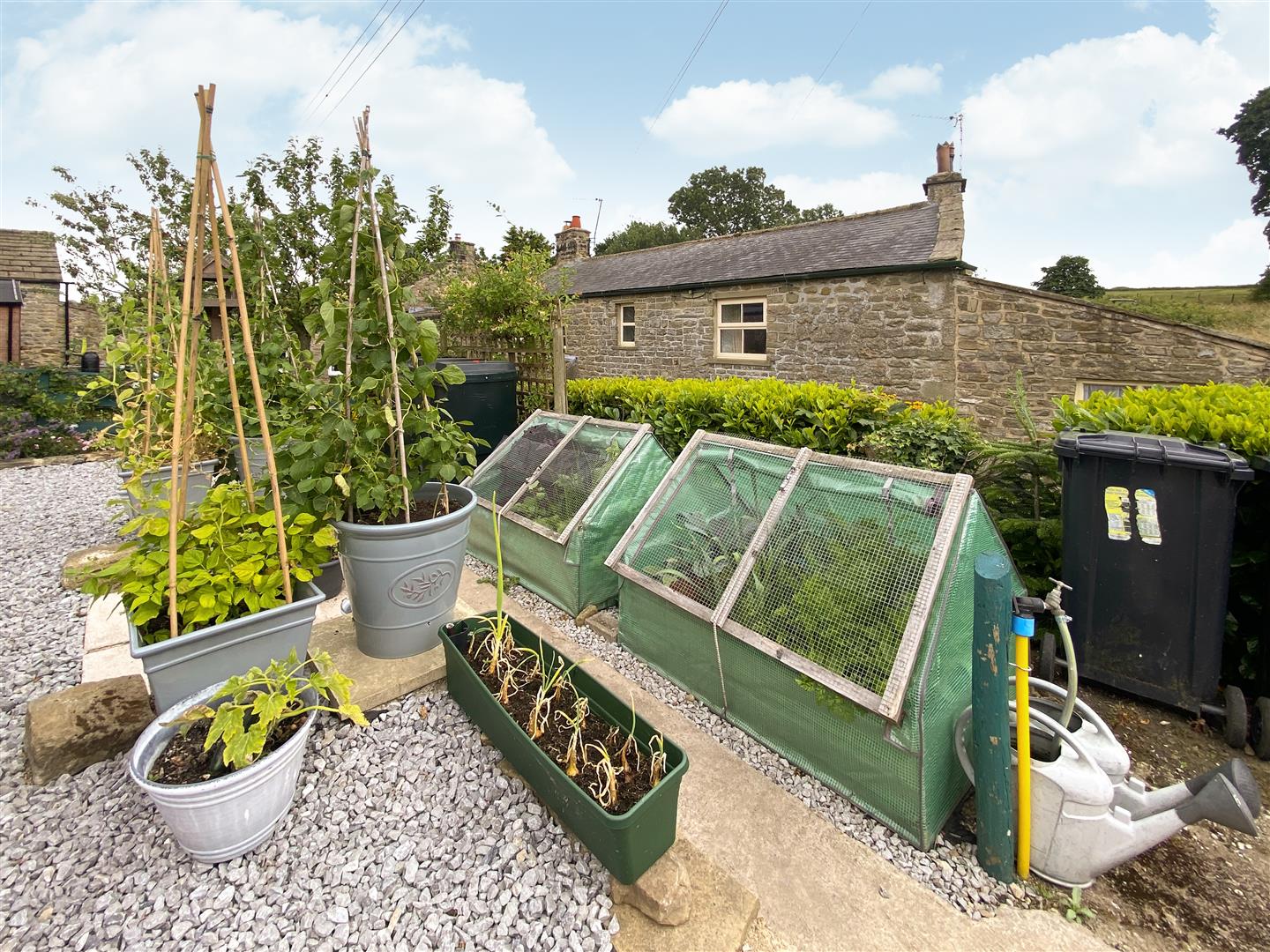To the front is an attractive Pea gravel garden with a flower border having stone edging plus a useful log store, all enclosed by a hedged and walled boundary with gated access from the road.