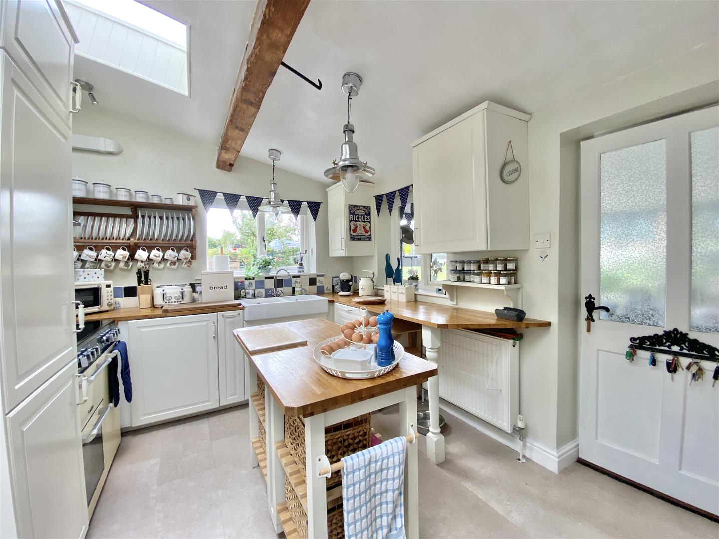 Description - This quirky cottage opens into an entrance porch and then into the spacious sitting room where the character is immediately on show with exposed wood beams and a working cast iron Yorkshire range fire. The sitting room leads through to a snug which also has a cosy feel from the double fronted Villager log burning stove which is set onto a stone hearth and there is an exposed wood beams. Also off the sitting room is a dining area, great for entertaining with steps up to a kitchen and a door through to a utility room and it could also make for a great at home study. There is also a useful undercroft for extra storage. The utility room has a worktop with spaces under for a washing machine and under counter fridge and freezer with a clever set of shelving also built in.