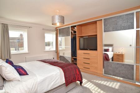 On the first floor there are four good-sized bedrooms, all benefiting from fitted wardrobes with integrated power points suitable for concealed televisions. All bedrooms have wired CAT5 internet and TV terrestrial and satellite aerial sockets.