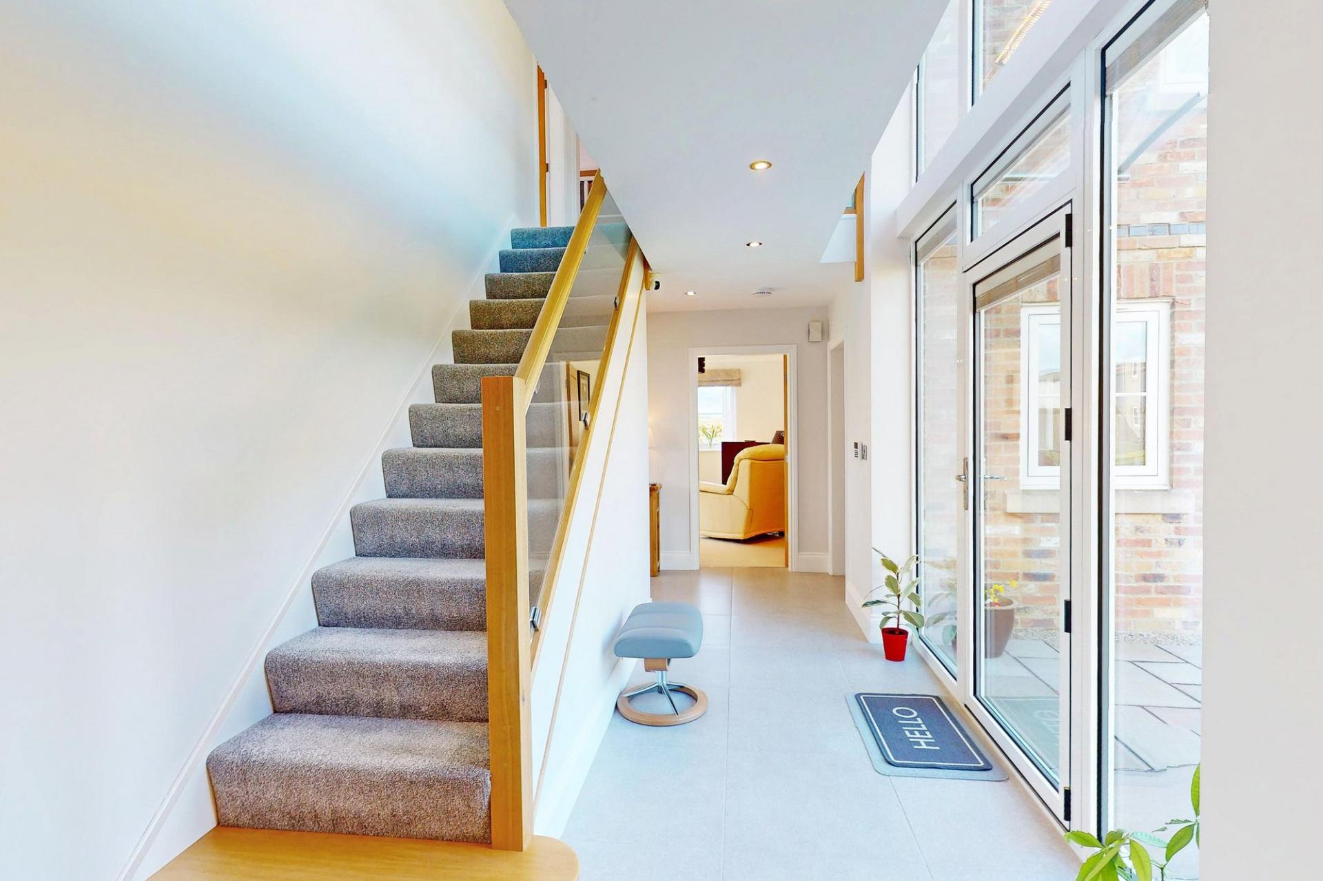 This sustainable highly energy-efficient home benefits from solar panels, a whole home backup Tesla battery storage system and an air source heat pump heating system. Ripon Grammar School is approximately five miles away.