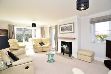 The main sitting room is a large and attractive space with windows and glazed bi-folding doors opening onto the garden, together with a wood burning stove creating a focal point.