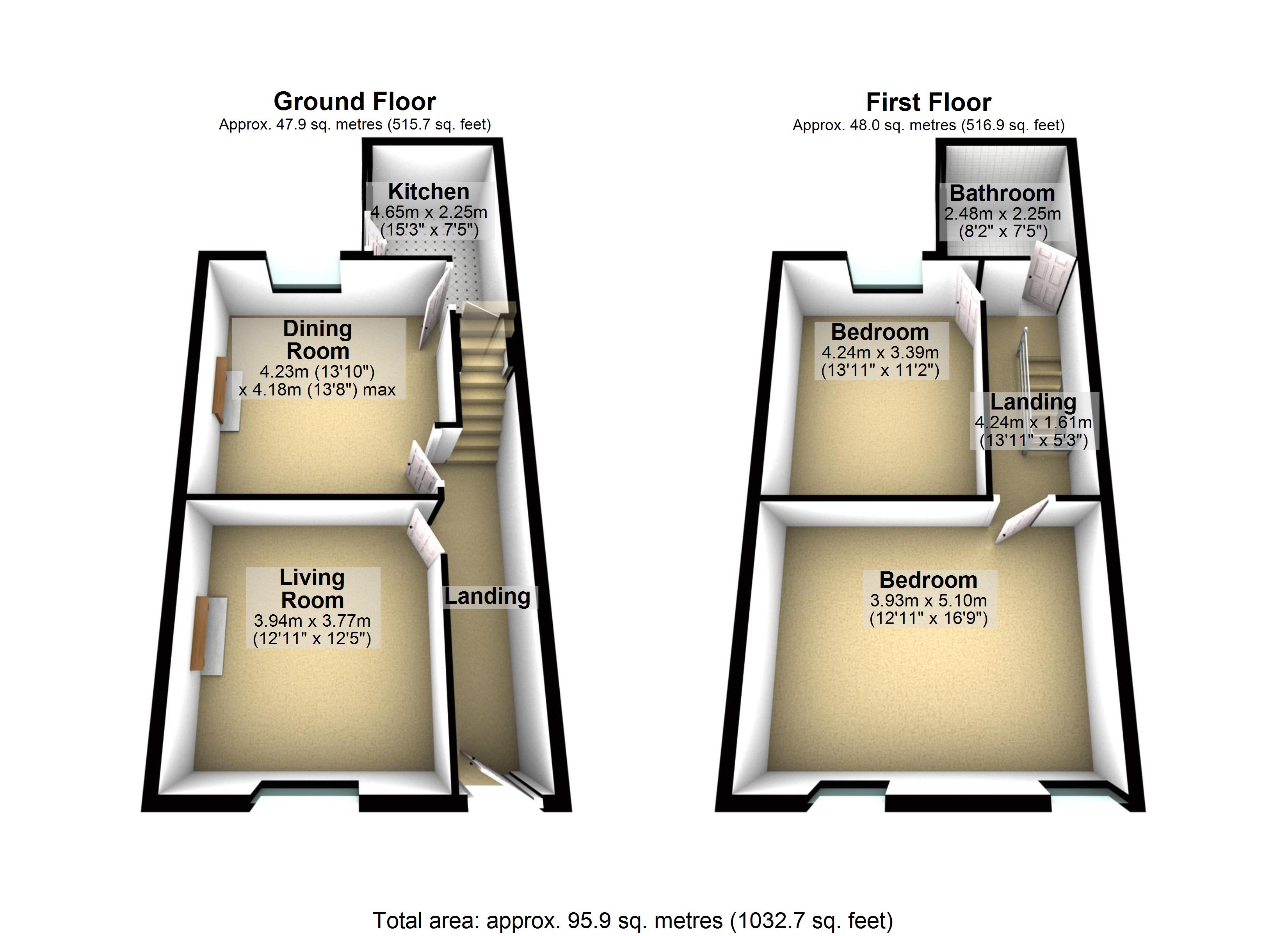 Internally the accommodation covers approximately just over 1030sqft of living space, comprising of entrance hallway, TWO RECEPTION ROOMS, kitchen, CELLAR, large master bedroom, second double bedroom and family bathroom suite.