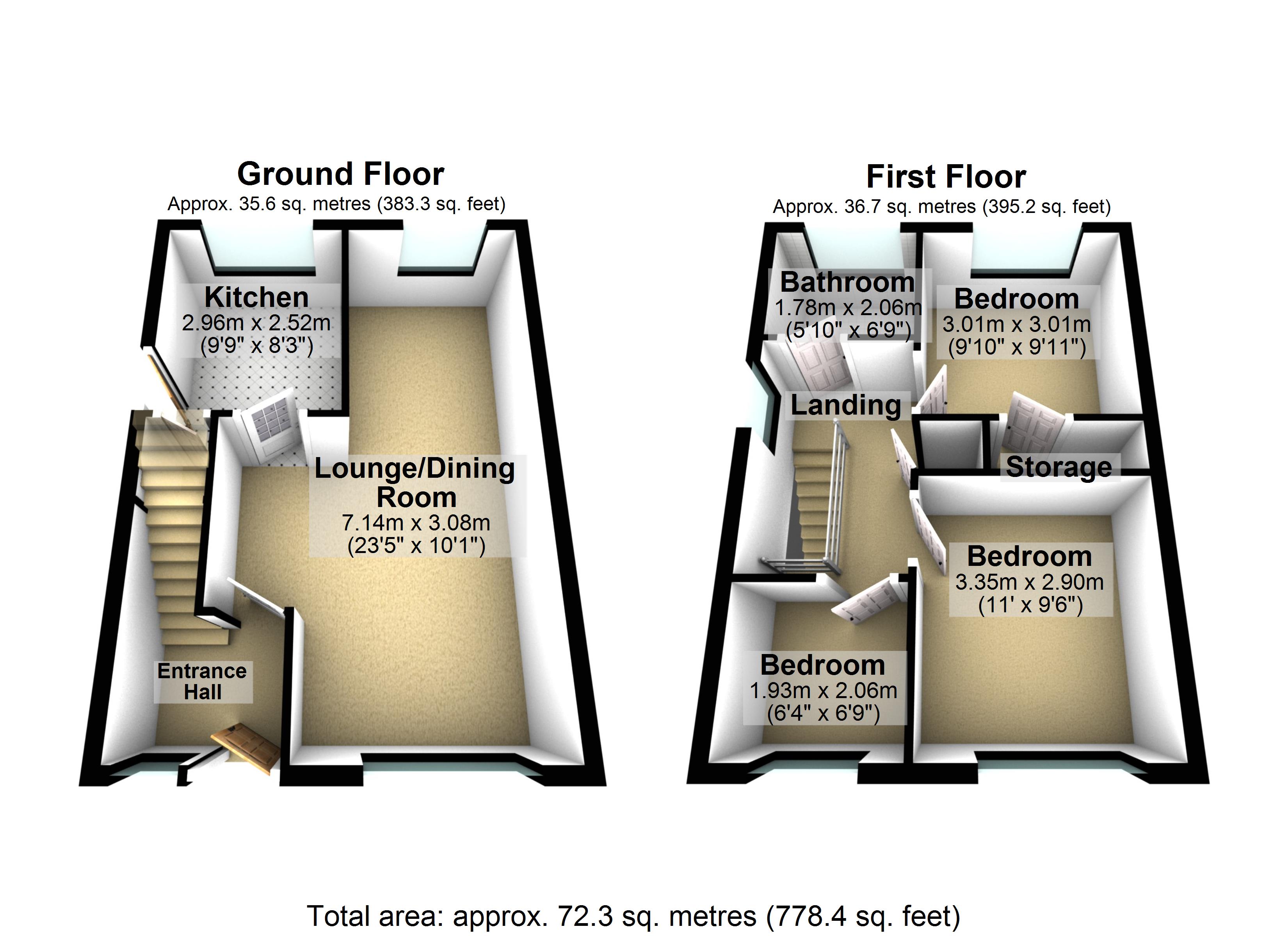 Internally the accommodation covers approximately just over 775sqft of living space, comprising of entrance hall, OPEN PLAN LOUNGE/DINER, modern fitted kitchen, THREE BEDROOMS and family shower room.