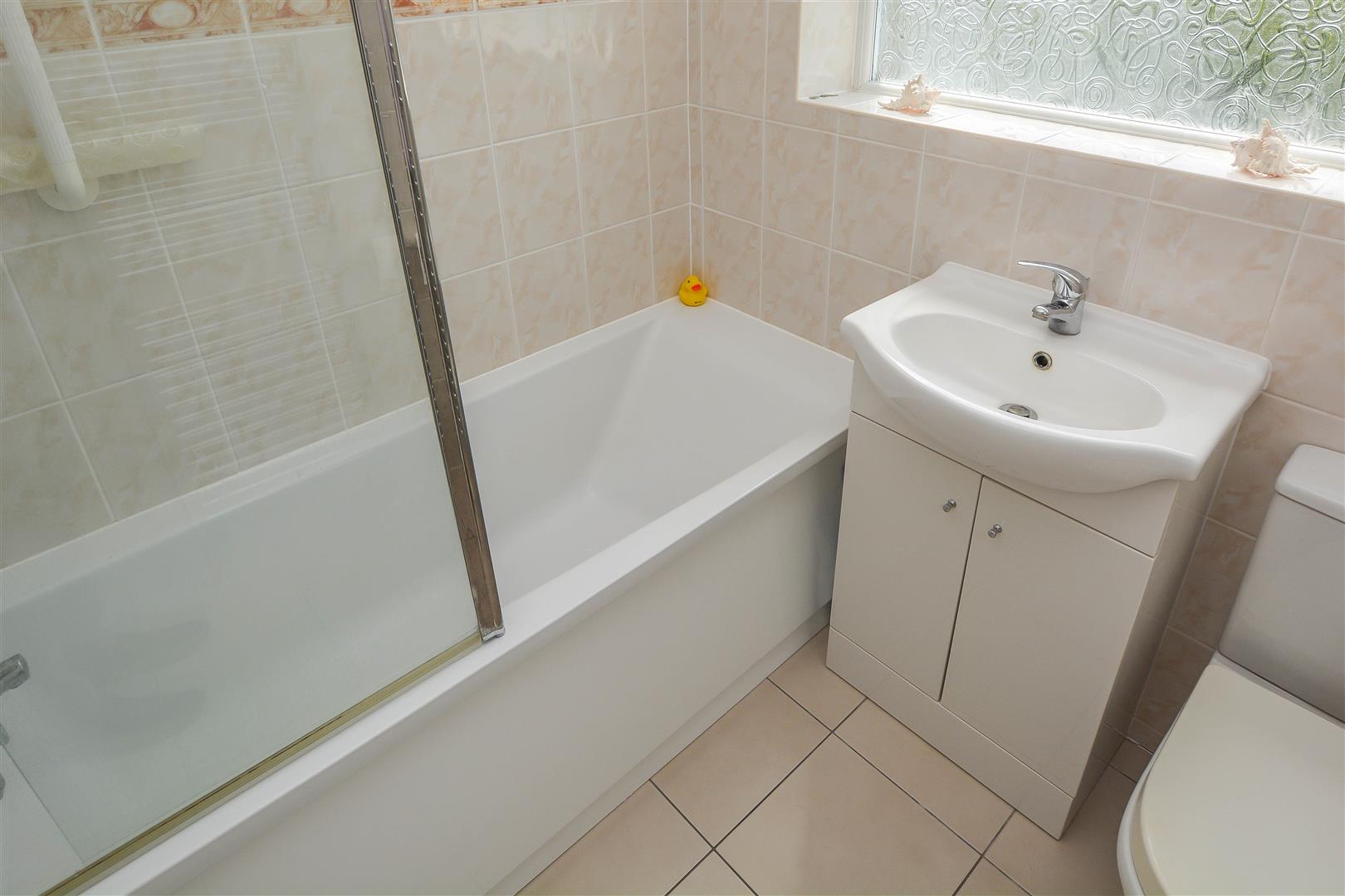 Externally, the south-facing rear garden is predominantly laid to lawn and framed by mature shrubs, providing a tranquil outdoor setting. At the front, a block-paved driveway accommodates off-street parking for two vehicles and leads to the attached garage, ensuring both convenience and practicality.