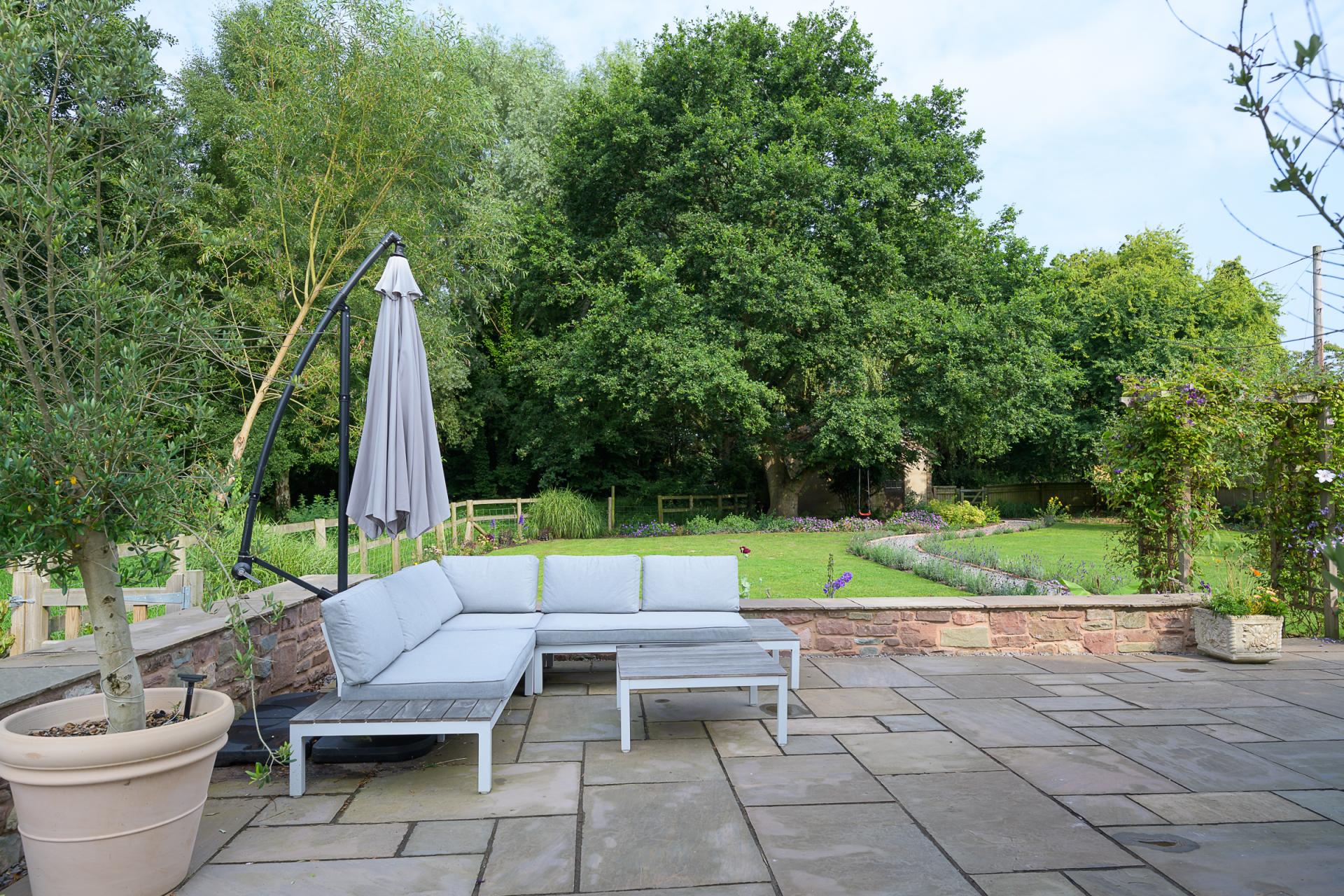 The manicured grounds around Flaxley House offer a serene space to enjoy the rural surroundings. A large sun terrace wraps around the rear side of the home and this yields an excellent spot for both an outdoor living room and an alfresco dining space - particularly as there is a brick-built pizza oven occupying one area.