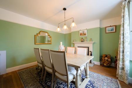 Meanwhile, the dining room is found on the opposite side of the reception hall. This, much like the sitting room, bears a high ceiling with picture rails, a cast iron fireplace and a sash window with original shutters.