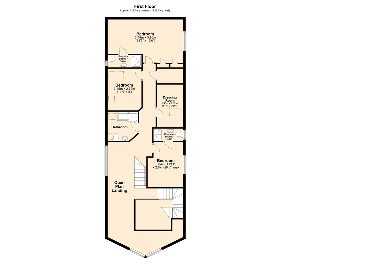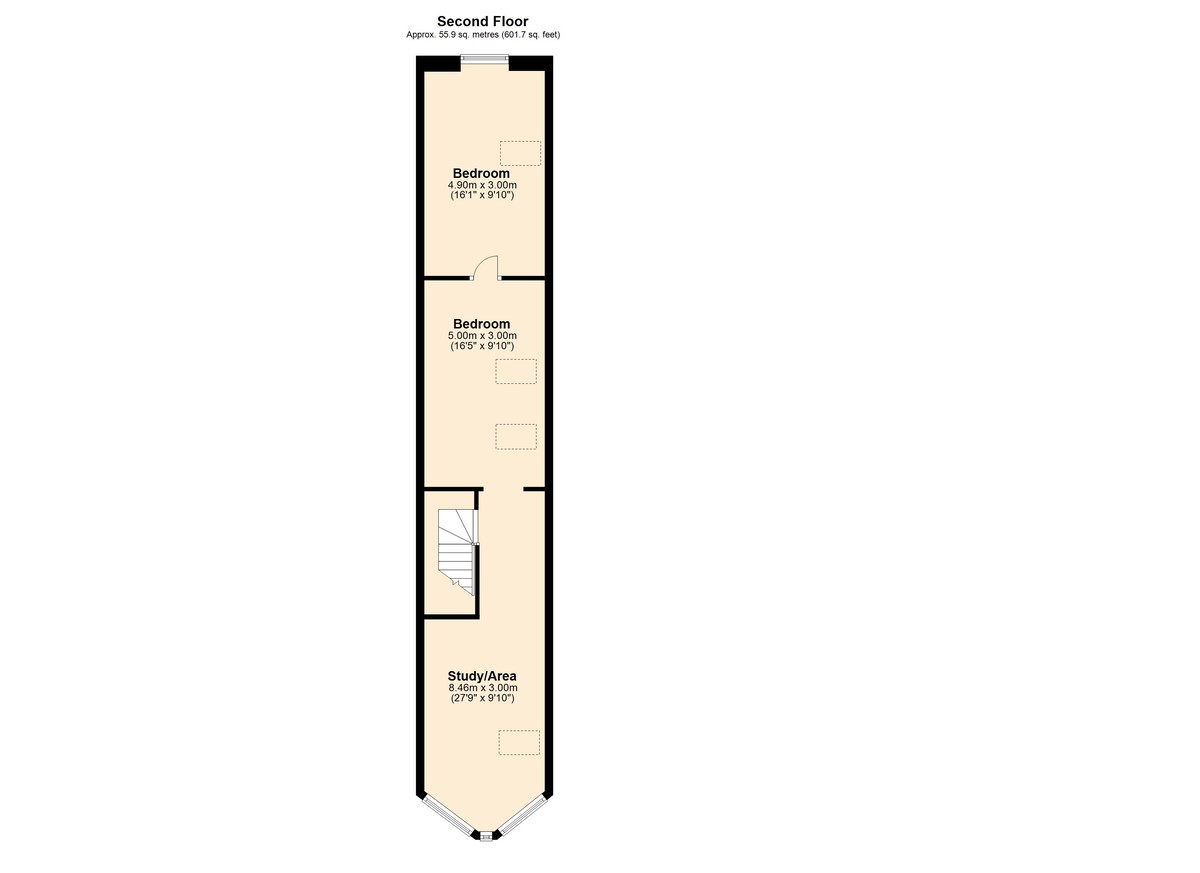 - Laid out over three storeys