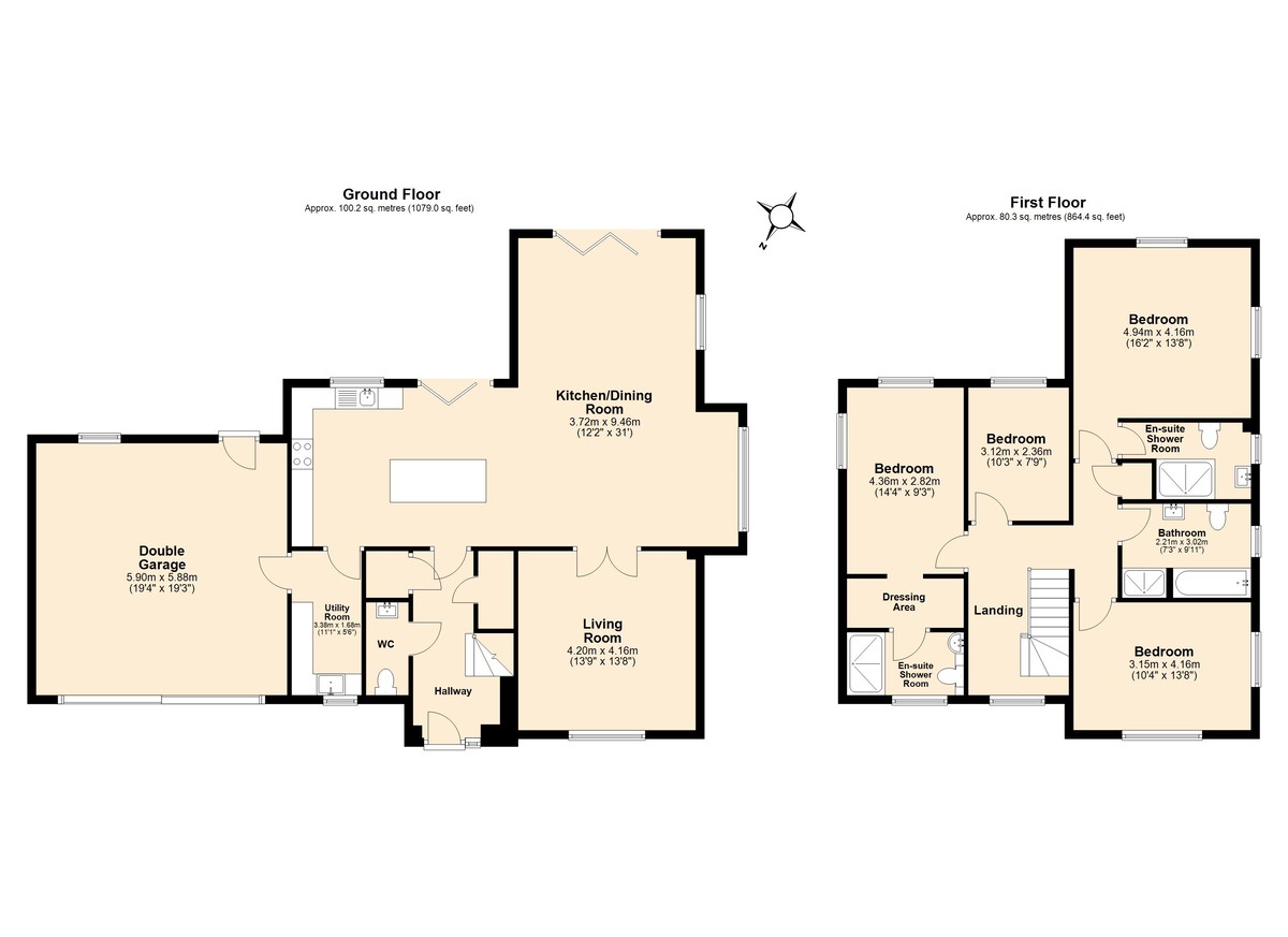 - Four bedrooms, two with en-suite facilities