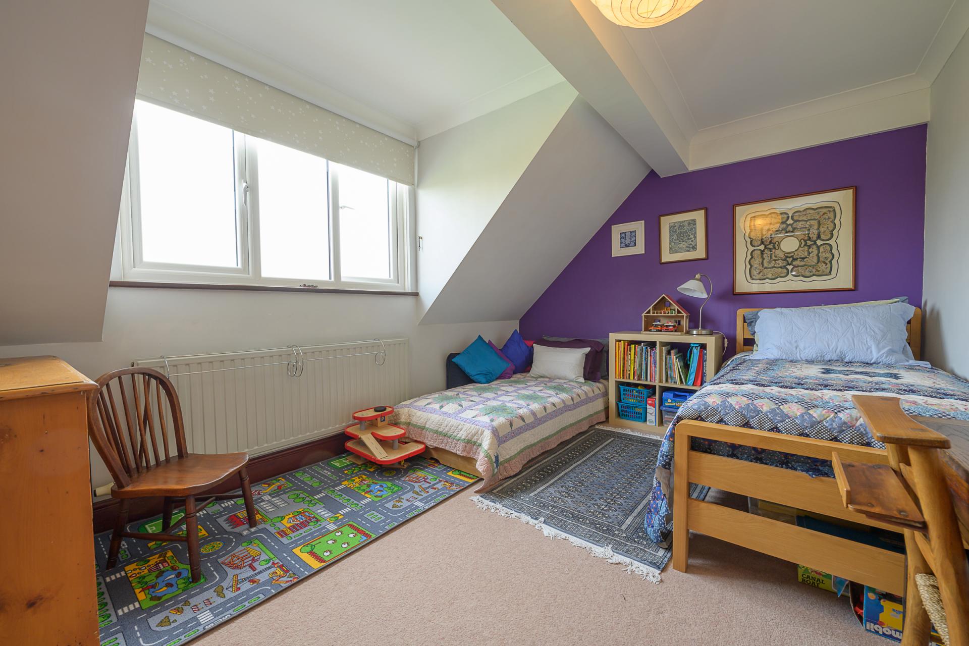 A staircase rises from the entrance hall and wraps around to a galleried landing - an area large enough to serve as a further space for home working or reading. There are four double bedrooms on this level, each featuring dormer windows that provide elevated views across the village and surrounding countryside. All bedrooms also benefit from built-in storage.