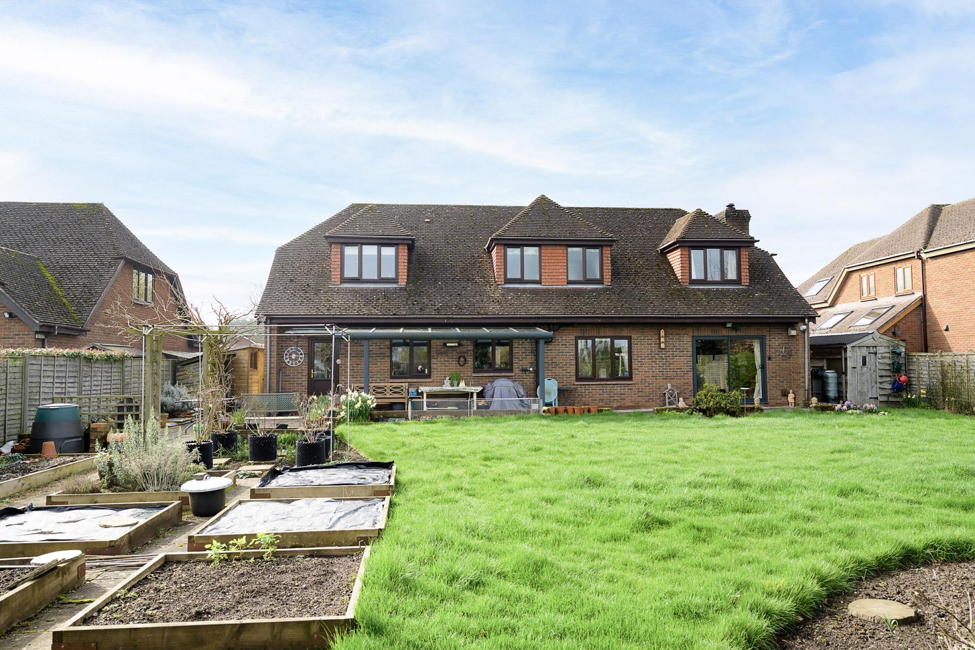 A pergola arch leads through to the kitchen garden, tucked neatly into the far corner of the plot. This productive area has a greenhouse, raised planting beds and a small fruit cage. In terms of parking arrangements, there is an integral double garage which is complete with fitted storage, plus light and power, granting provision for additional appliances such as a chest freezer or a tumble dryer. There is also a paved driveway with space for two vehicles.